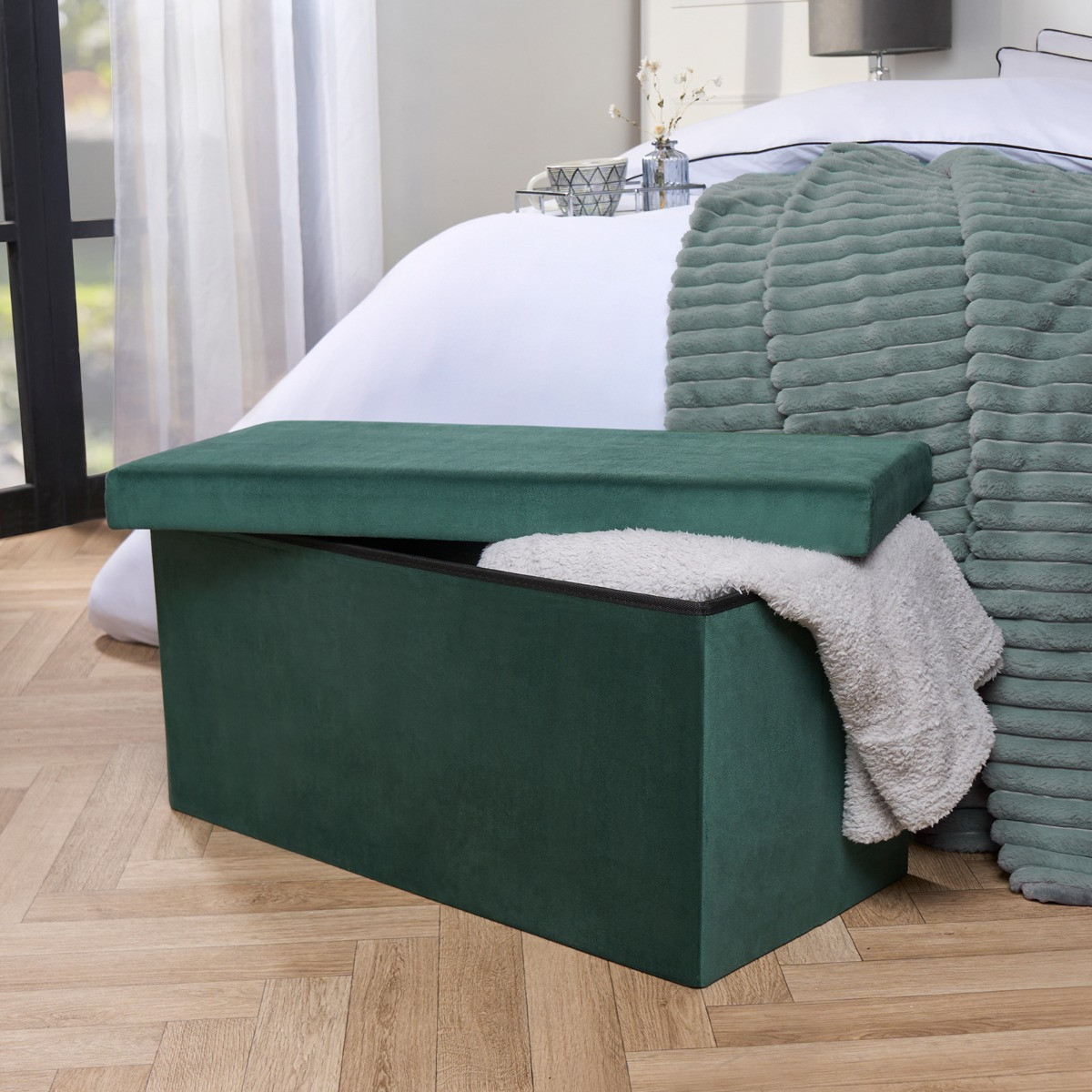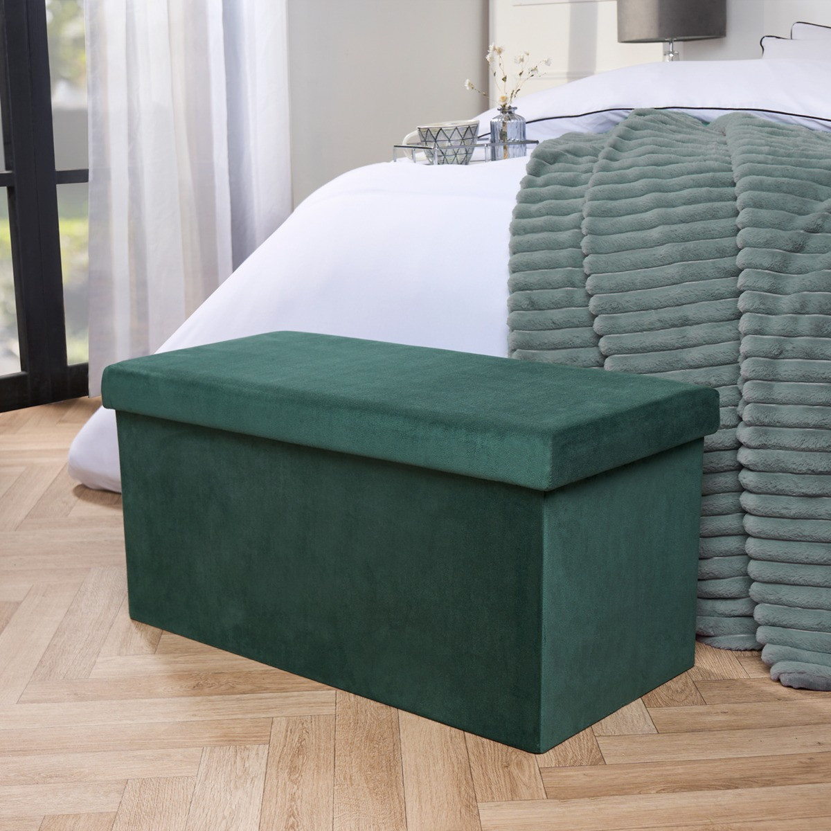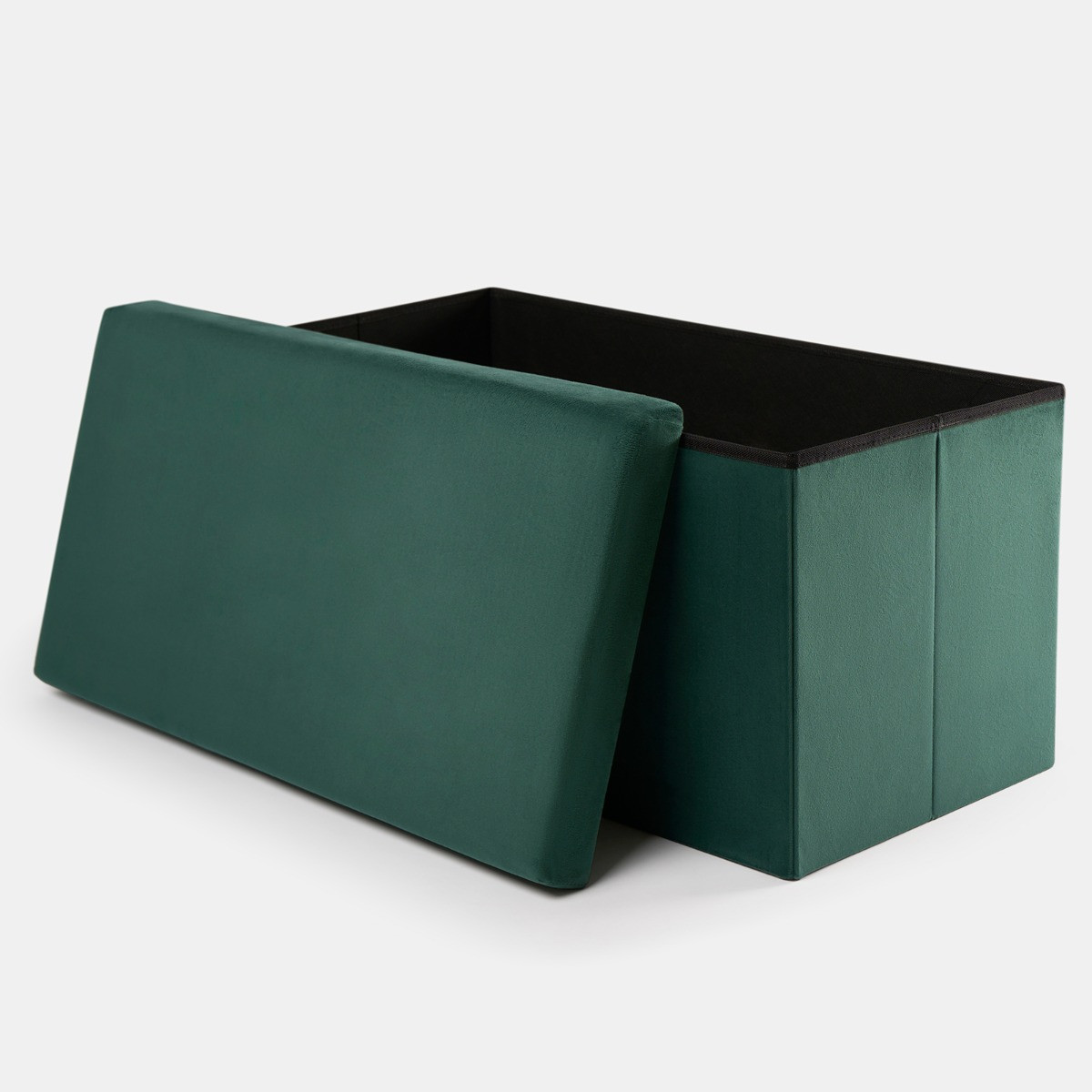 OHS Matte Velvet Foldable Rectangle Storage Ottoman - Forest Green