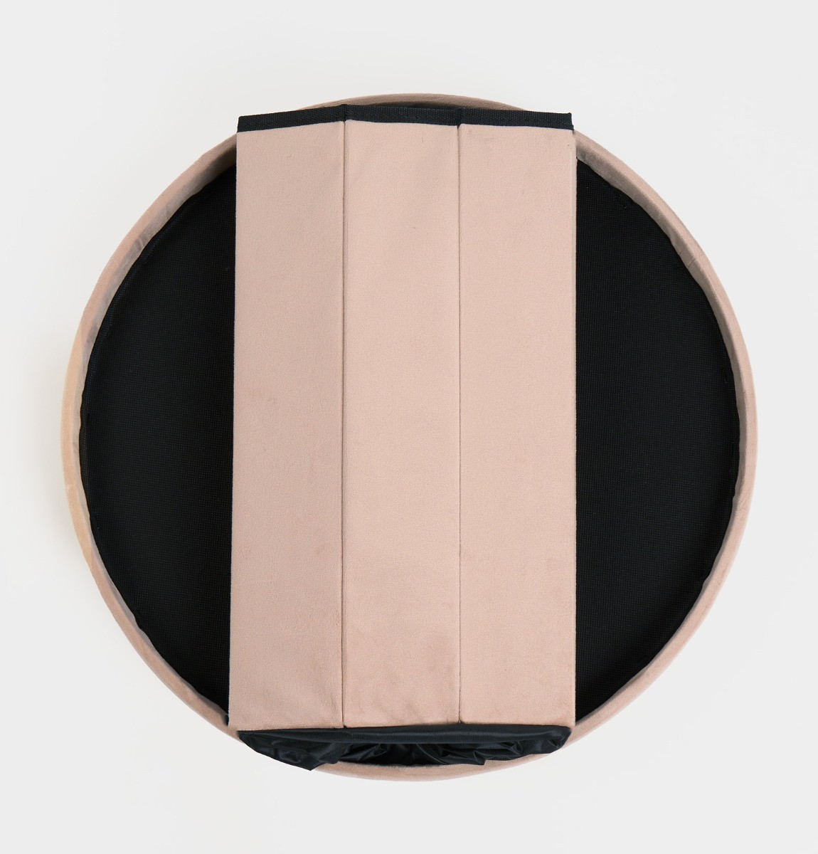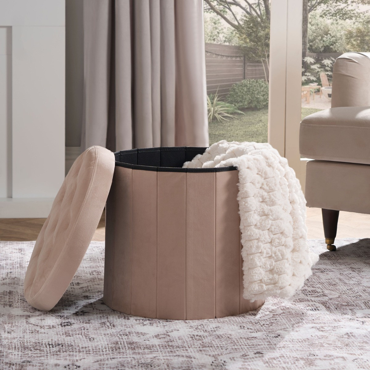 OHS Matte Velvet Round Foldable Storage Ottoman - Natural