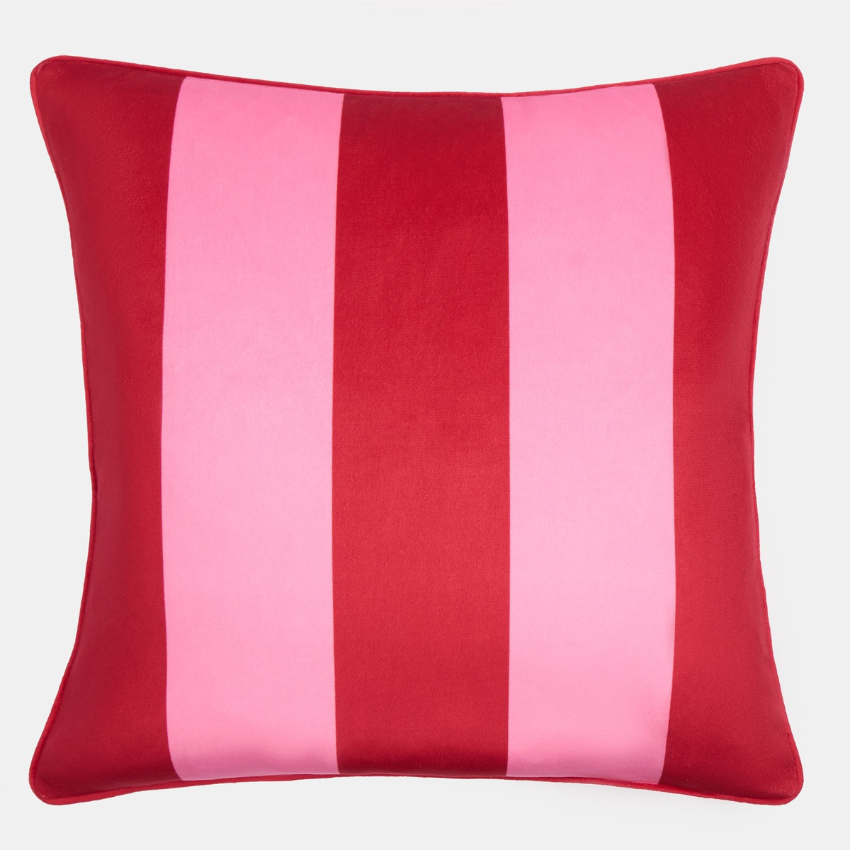 The OHS Matte Velvet Stripe Cushion Covers in Red/Pink feature bold, alternating stripes that create a striking and playful design. The luxurious matte velvet fabric enhances the rich colours, offering both a soft feel and a sophisticated look. Perfect for adding a pop of vibrant style to your living space, these cushion covers are ideal for modern and contemporary décor schemes, effortlessly blending colour and texture for an eye-catching finish.