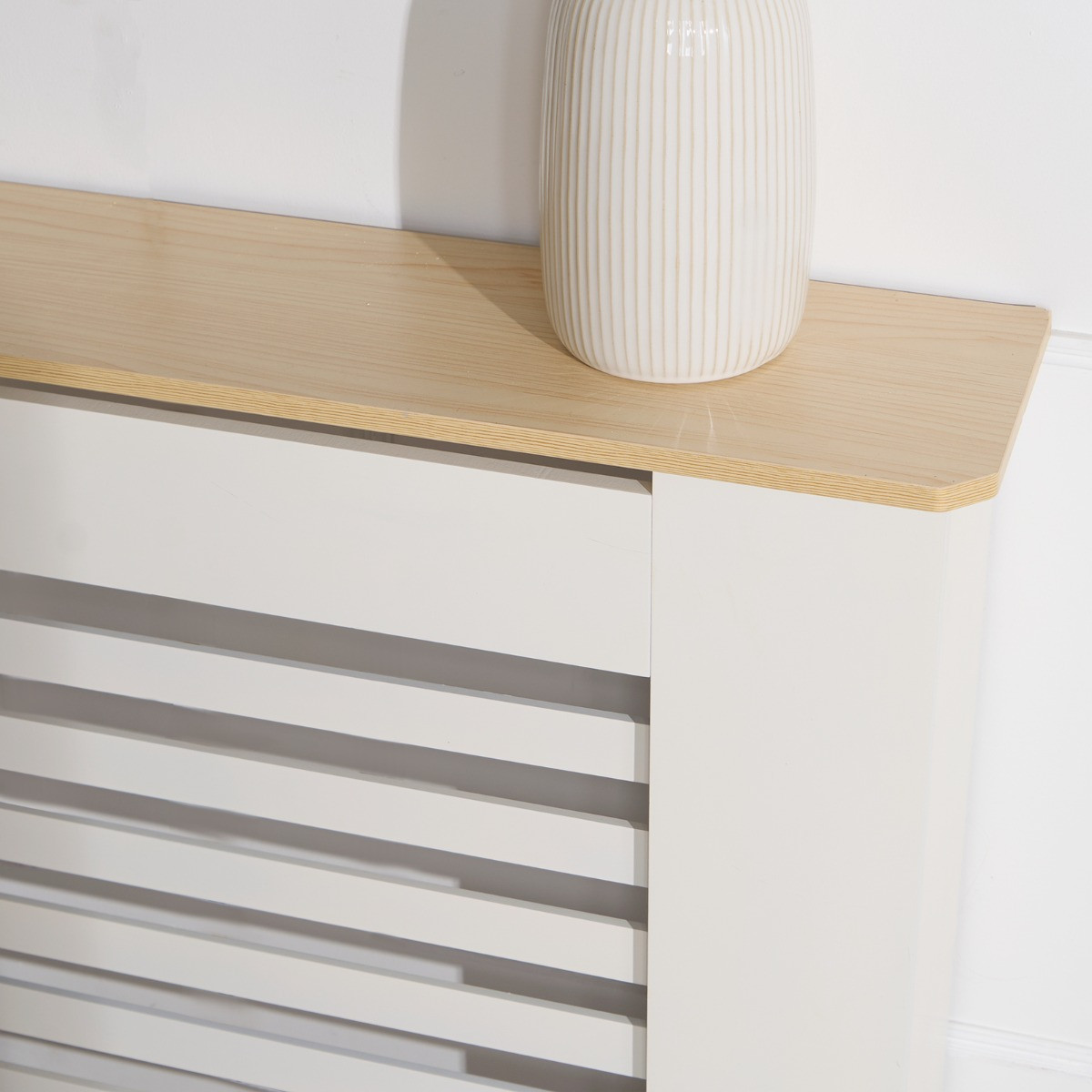 OHS Medium Wooden Radiator Cover with Oak Look Top - Cream