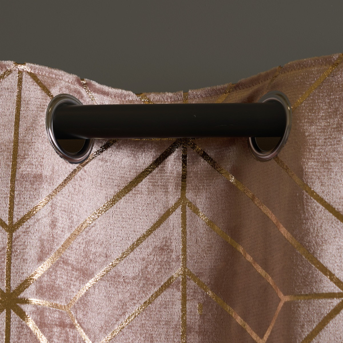 OHS Metallic Geo Print Velvet Eyelet Curtains, Blush - 66 x 54"