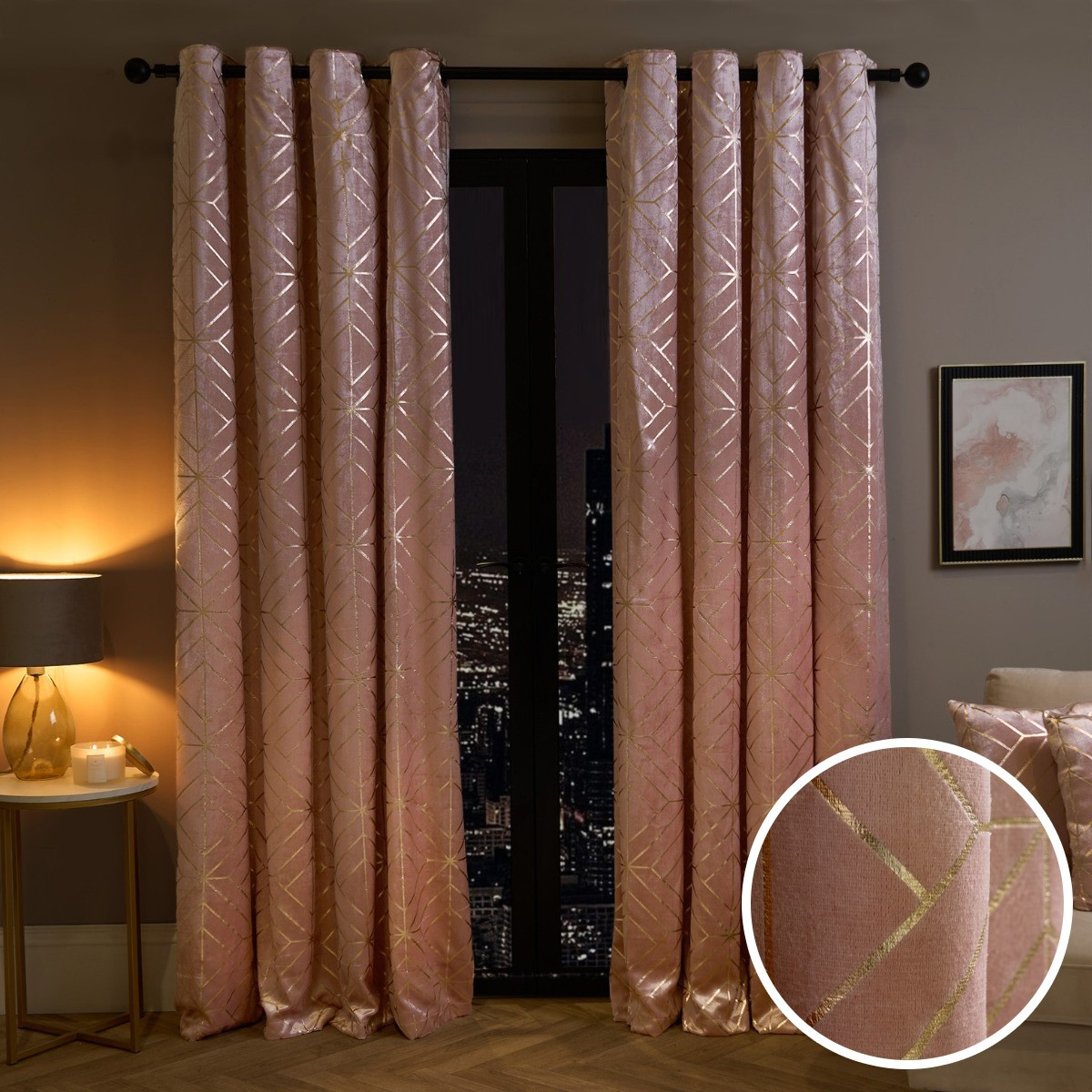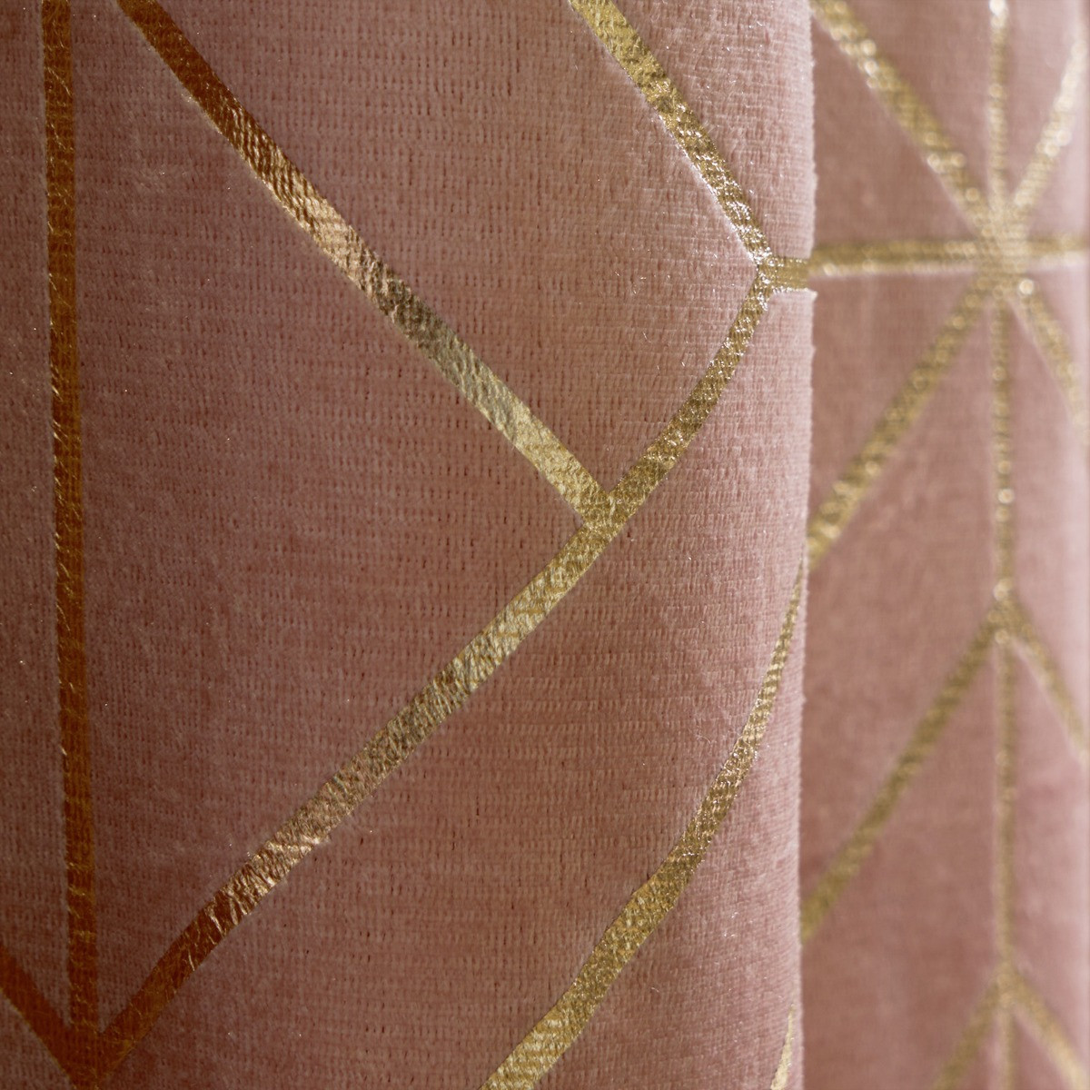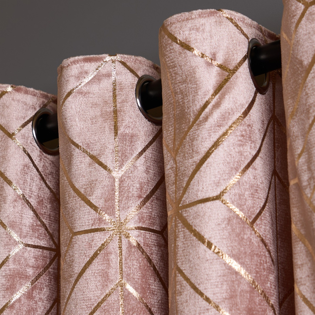 OHS Metallic Foil Geometric Print Velvet Eyelet Curtains - Blush
