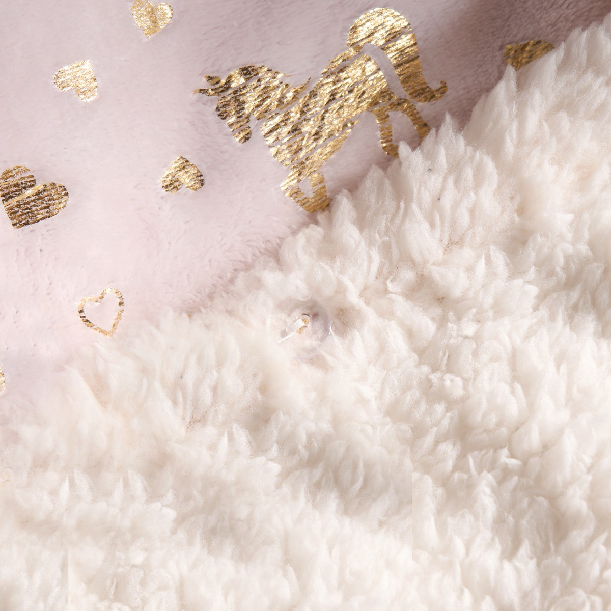 OHS Metallic Heart & Unicorn Fleece Duvet Set, Pink - Single