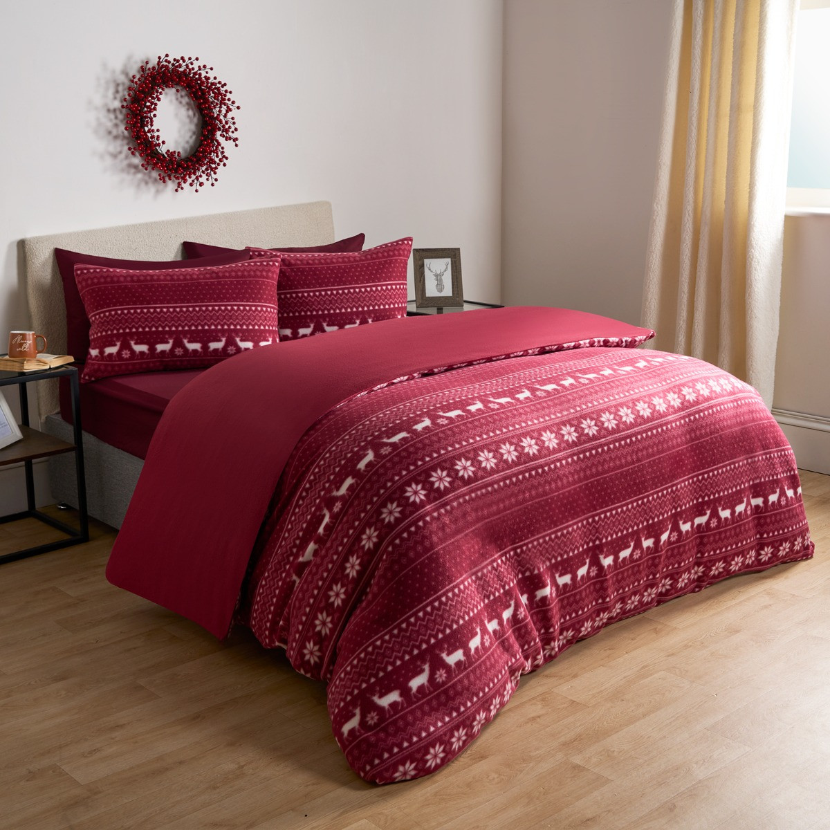 OHS Nordic Christmas Fleece Duvet Set - Burgundy