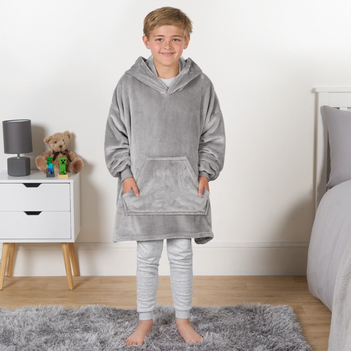 Dive into comfort and adventure with the OHS Kids Novelty Shark Tooth Hoodie Blanket in Grey. Perfect for young ocean explorers and shark enthusiasts, this hoodie blanket combines a playful shark tooth design with cosy warmth, making it an ideal choice for bedtime, playtime, or lounging. Featuring a fun and imaginative shark tooth design, this hoodie blanket showcases 3D shark tooth detailing along the front, creating a dynamic and engaging look. The design adds a touch of aquatic adventure and excitement, perfect for little ones who love sea creatures.