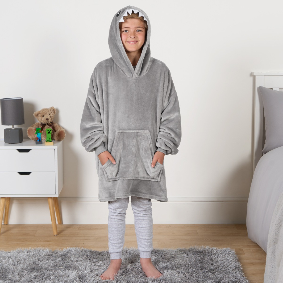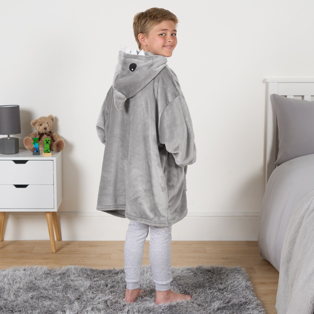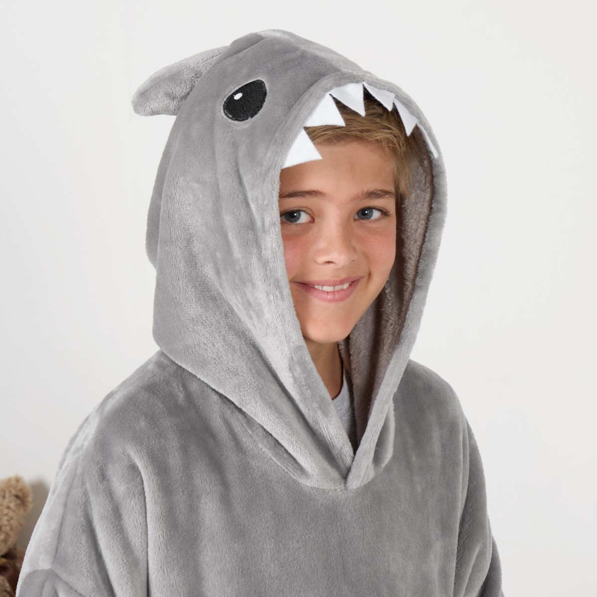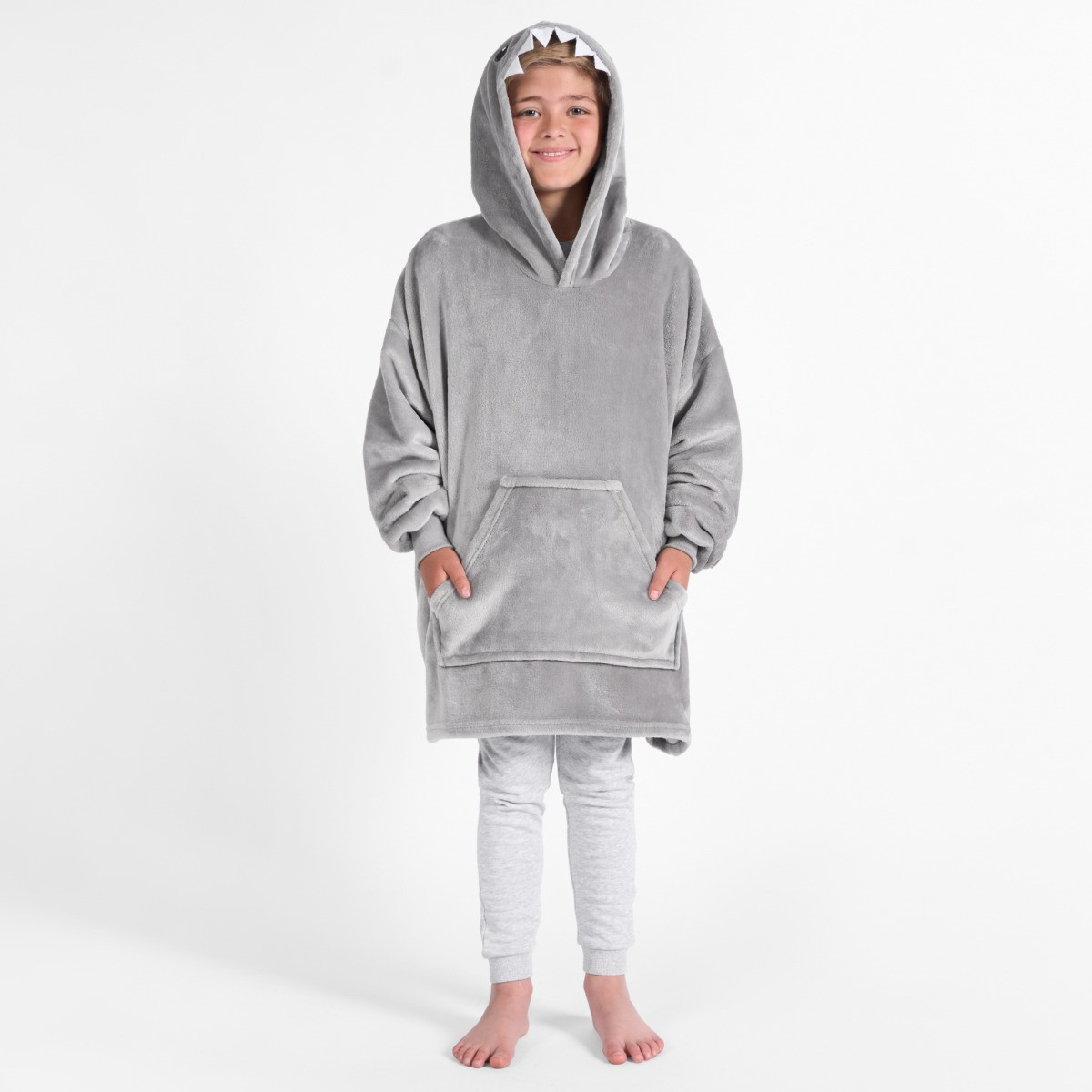 OHS Kids Novelty Shark Tooth Hoodie Blanket - Grey