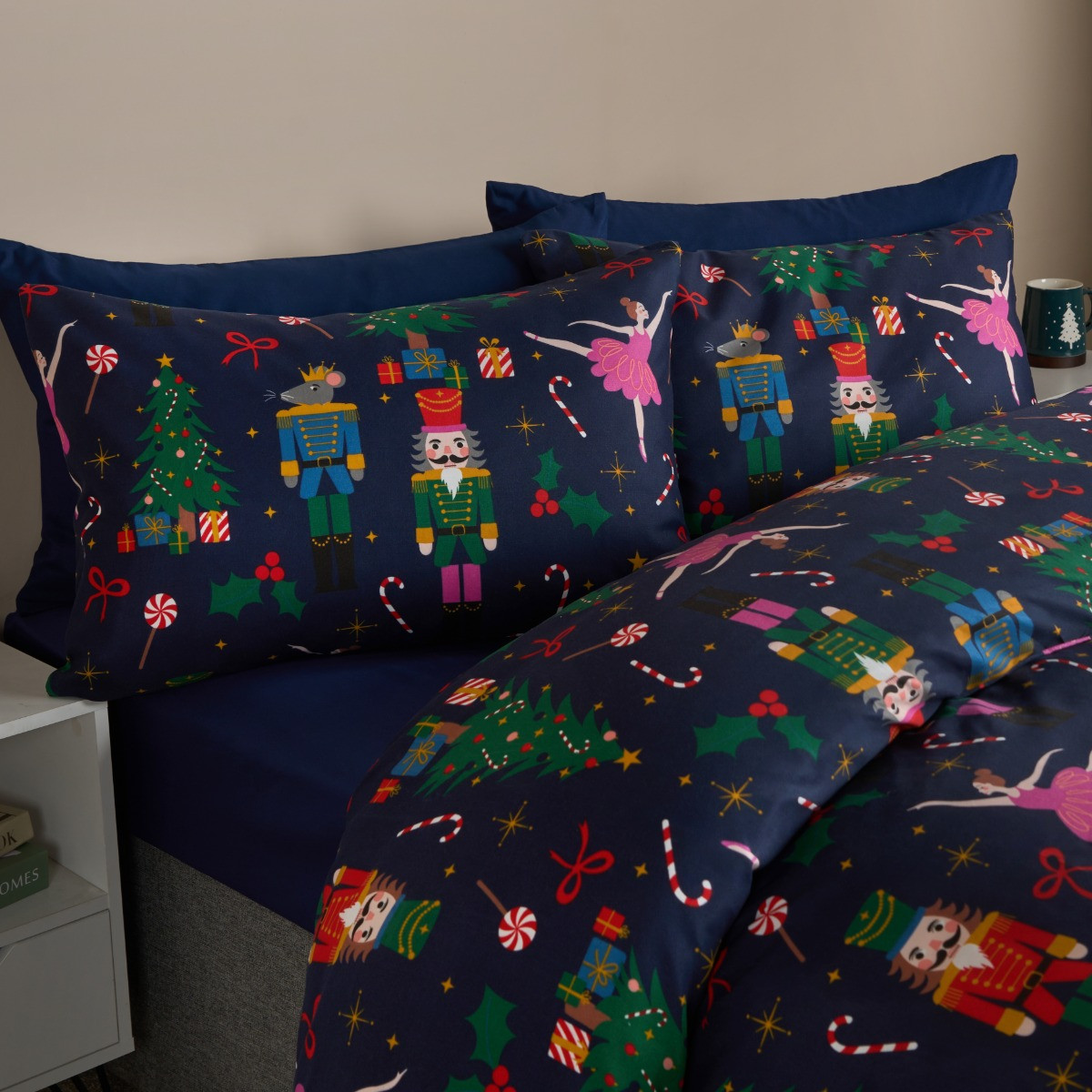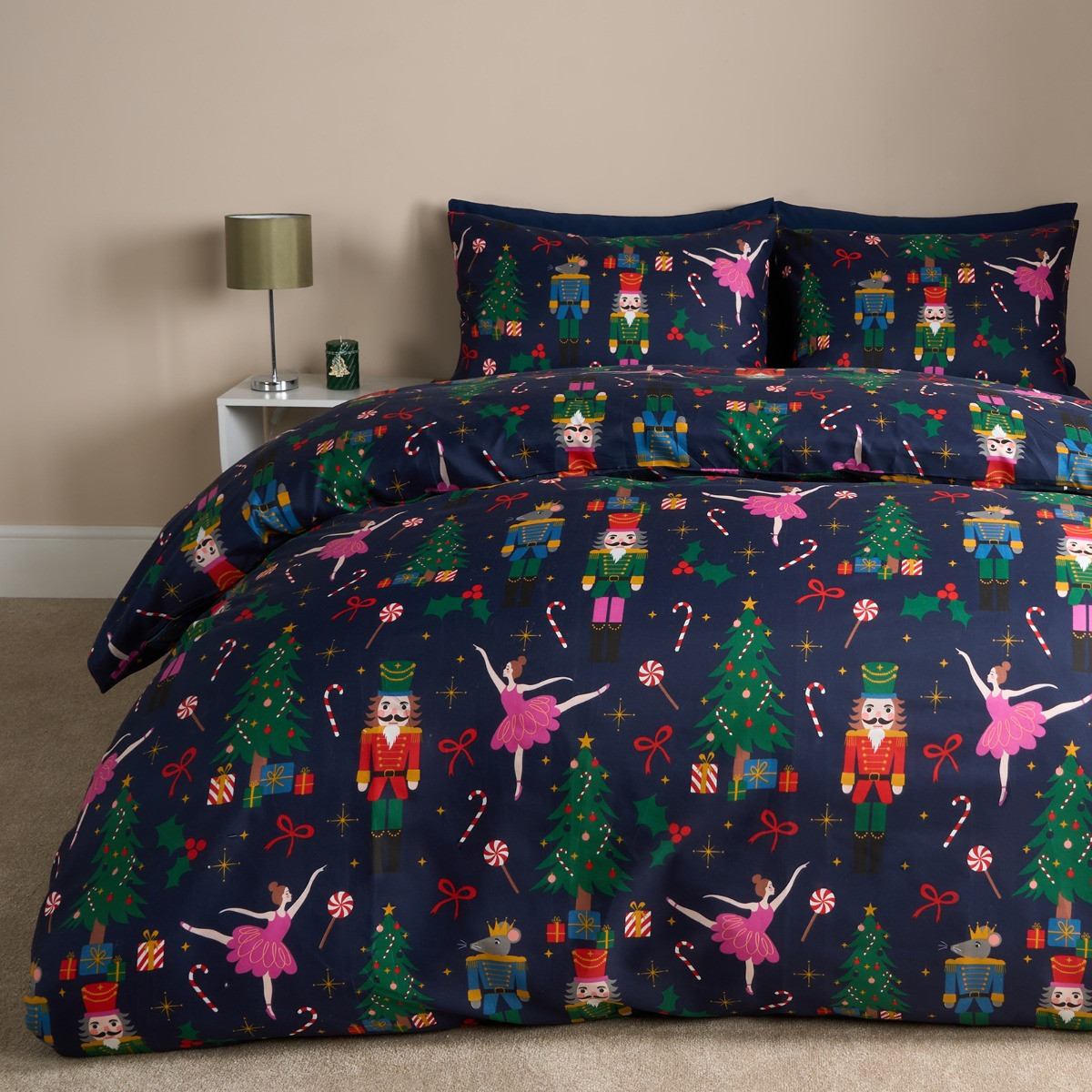 OHS Nutcracker Festive Duvet Cover Set - Navy