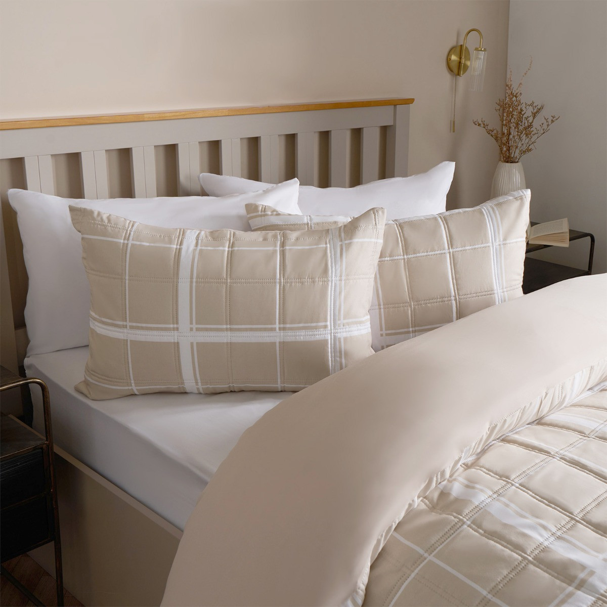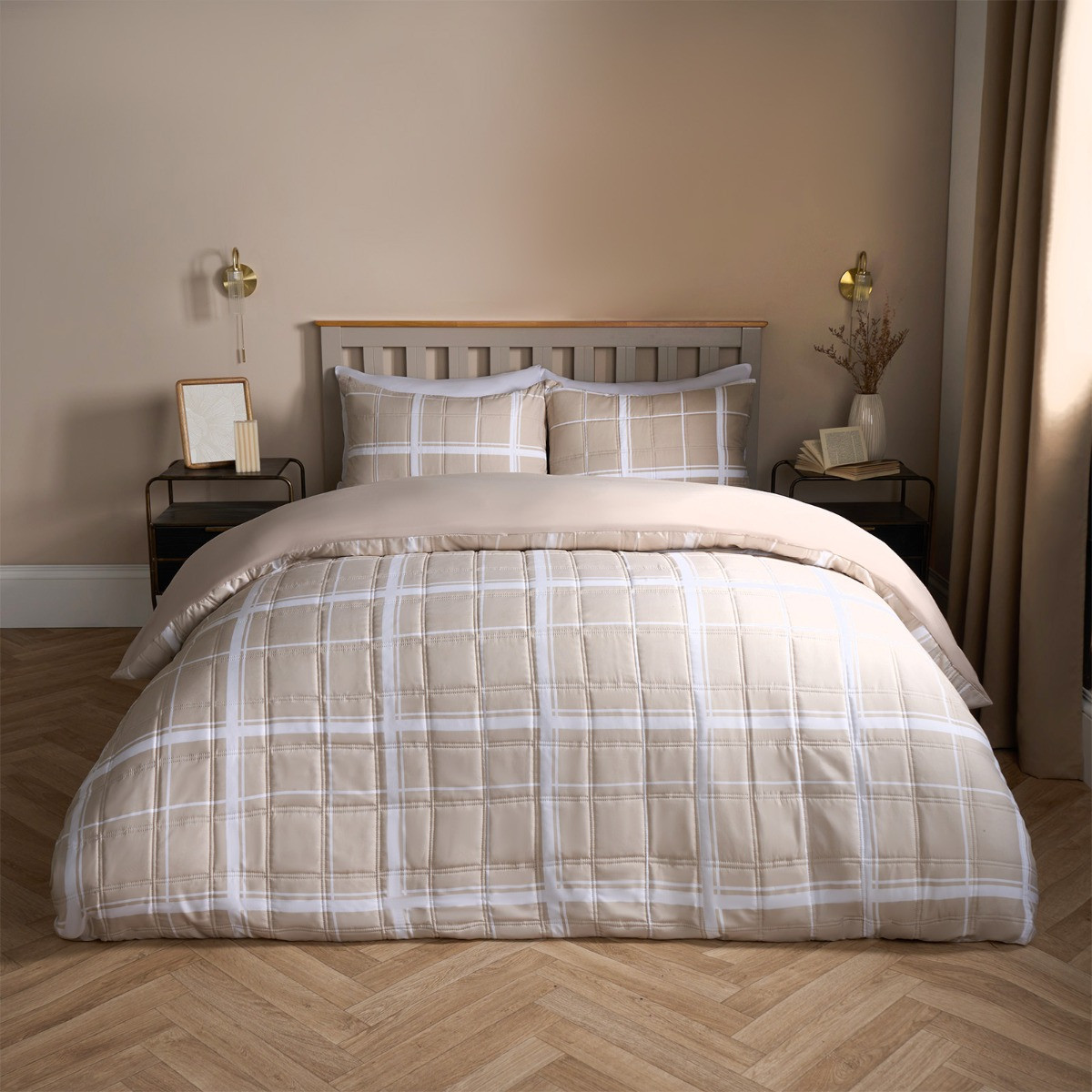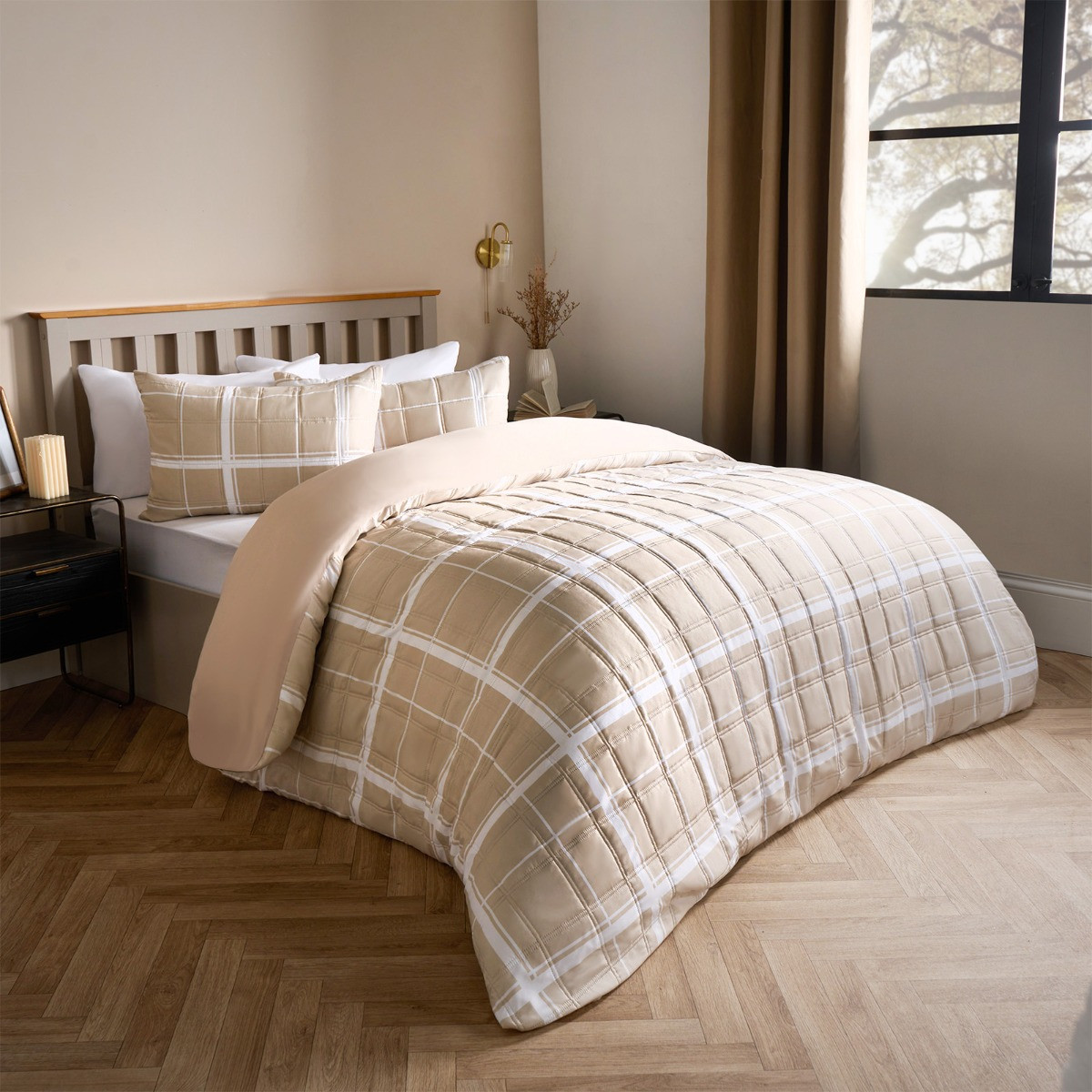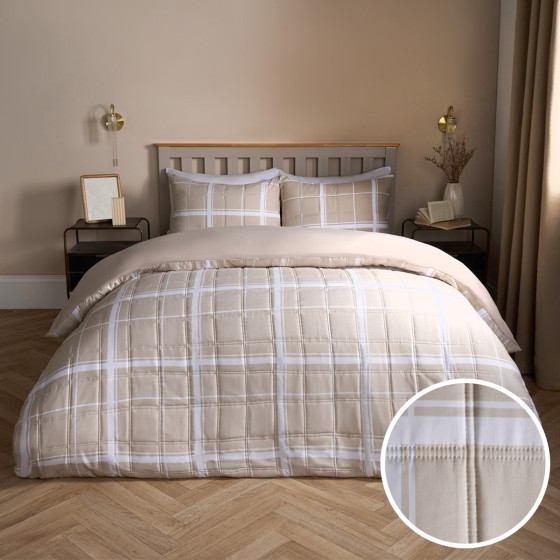 OHS Oakley Grid Check Pinsonic Duvet Set - Natural