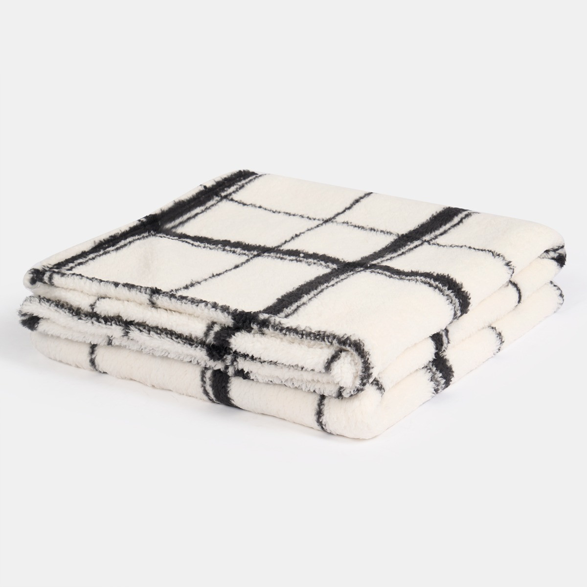 OHS Oakley Grid Check Teddy Throw - Monochrome