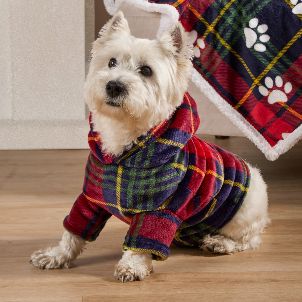 OHS Oxford Check Print Dog Hoodie - Navy/Red