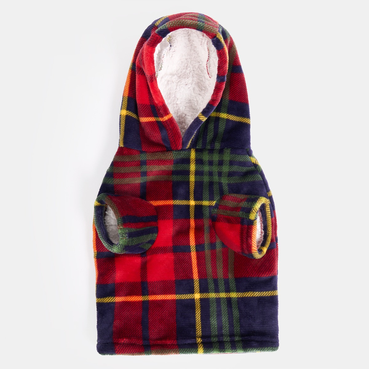 OHS Oxford Check Print Dog Hoodie, Red - Large