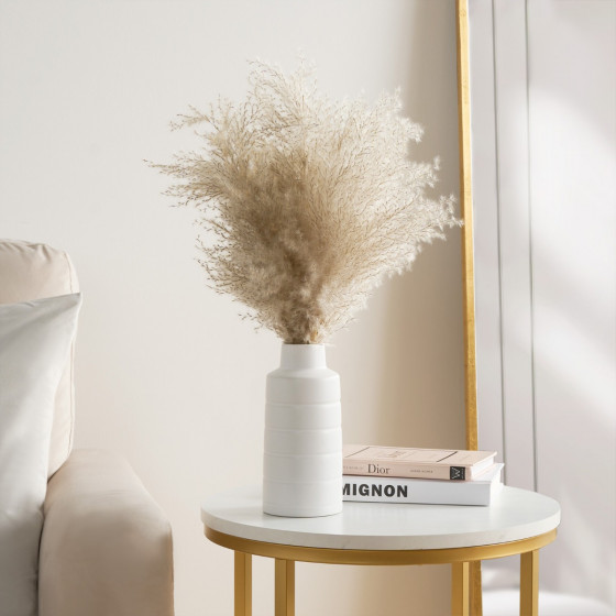 The OHS Pampas in Pot - Natural is a decorative artificial plant designed to bring the airy elegance and soft texture of pampas grass into your home. The pampas grass is crafted to closely mimic the look and feel of natural pampas, with feathery plumes and varying tones of beige, cream, and light brown. Made from high-quality, durable materials like plastic, silk, or synthetic fibers, the pampas grass is designed to maintain its shape and color without shedding or fading.