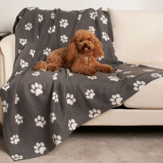 OHS Pet Paw Print Fleece Throw - Charcoal Grey