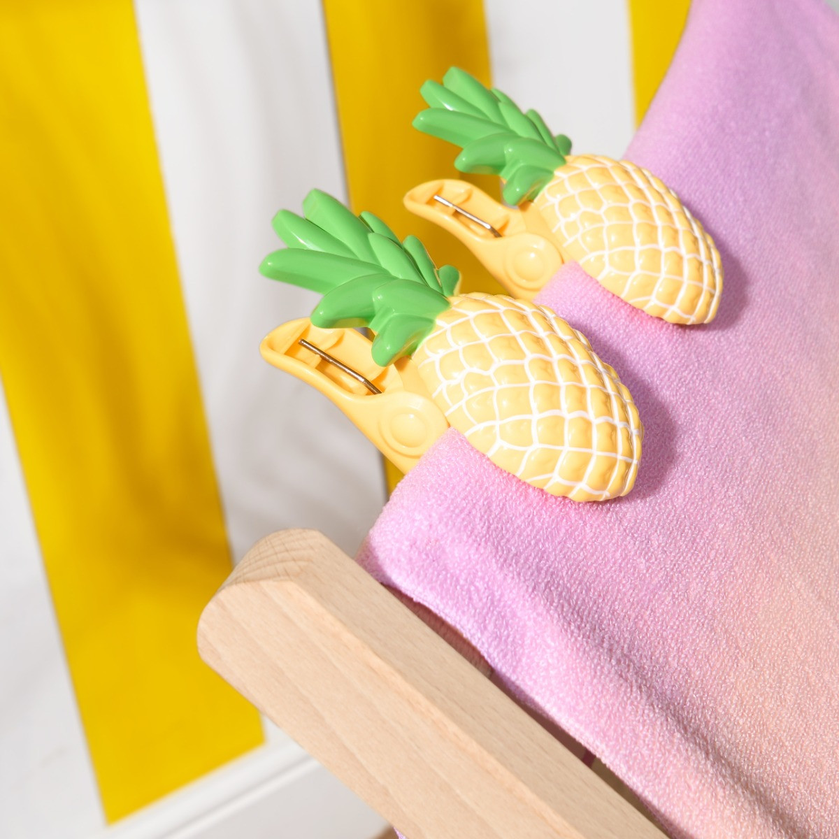 The OHS Pineapple Towel Clips are a tropical-inspired essential for your beach or poolside days. Designed to resemble cheerful pineapples, these bright yellow clips add a fun and fruity flair to your towel while keeping it securely in place, even on windy days. Lightweight, durable, and easy to use, these clips are the perfect combination of practicality and playful style. Whether you're lounging on the beach or by the pool, these clips are sure to bring a touch of sunshine to your summer adventures.