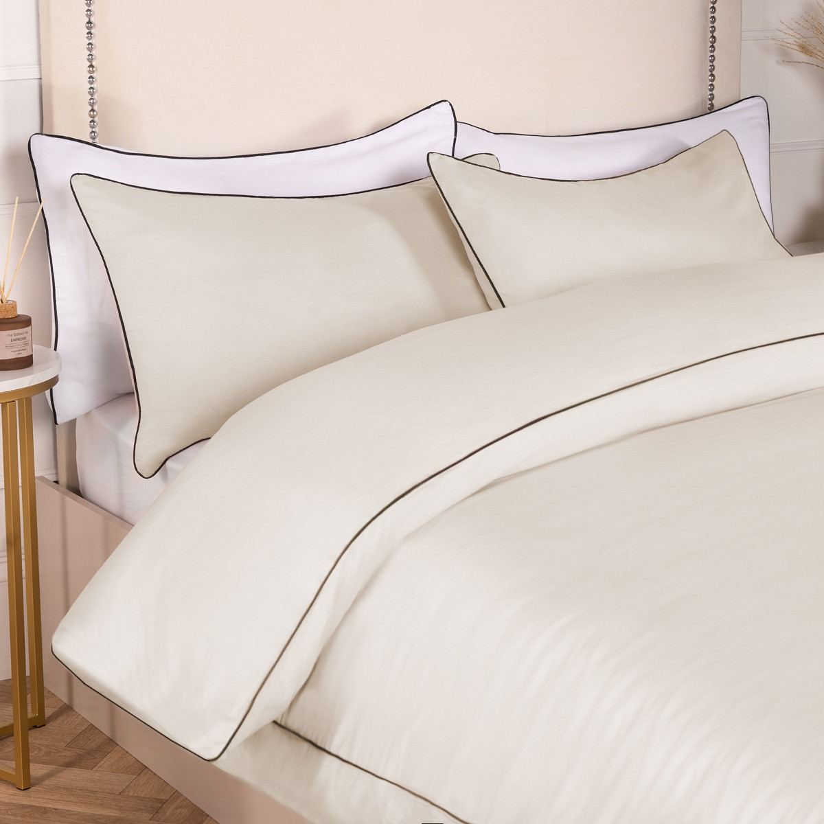 OHS Piped Edge Duvet Cover Set - Stone/Black