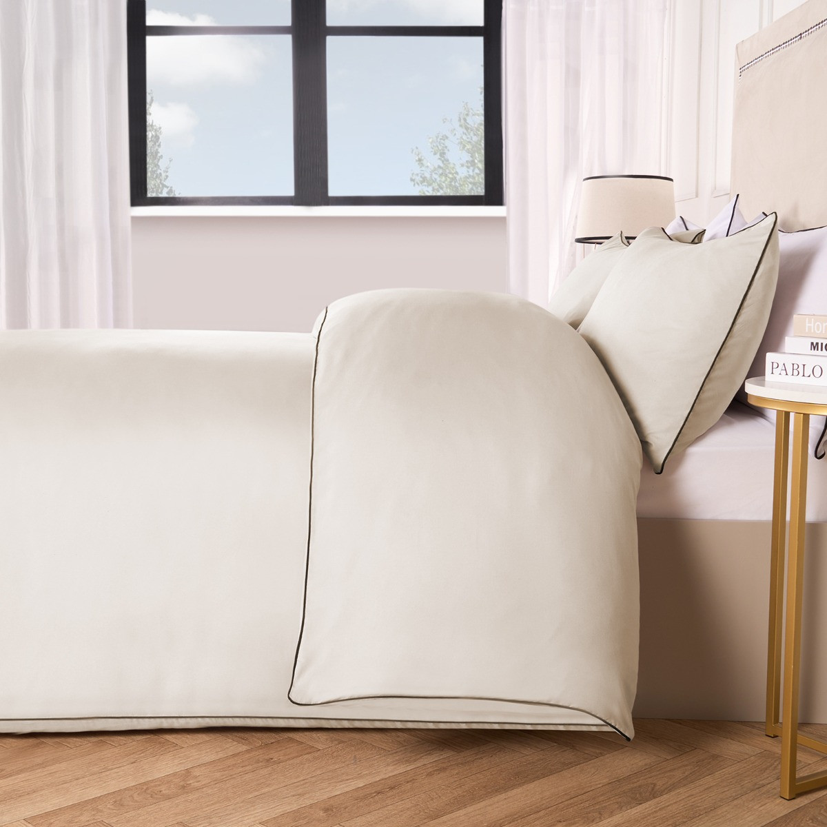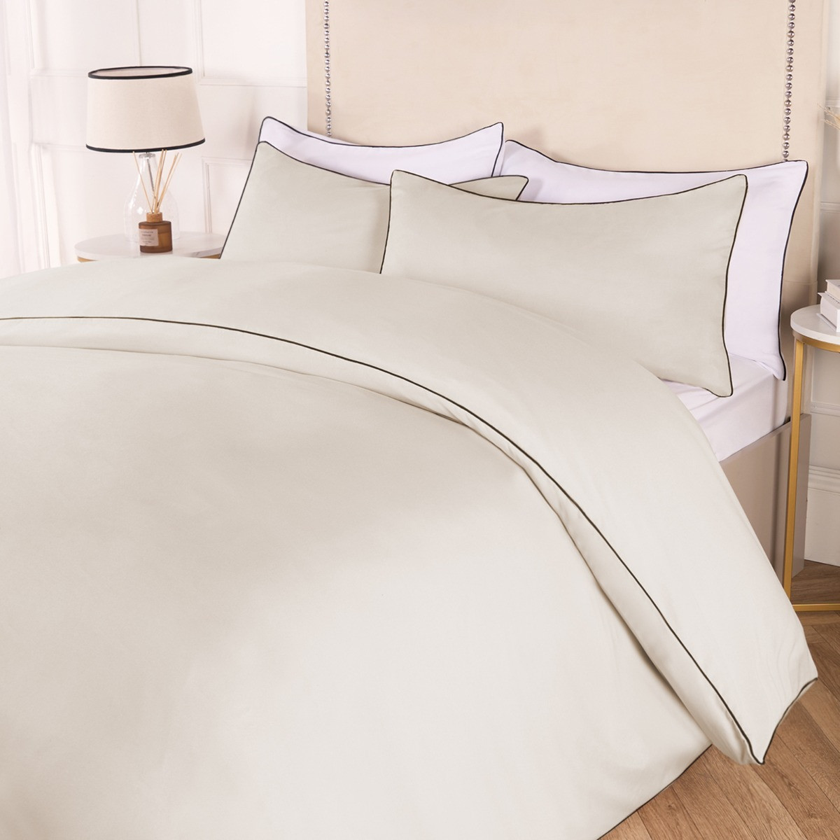OHS Piped Edge Duvet Set, Stone/Black - King