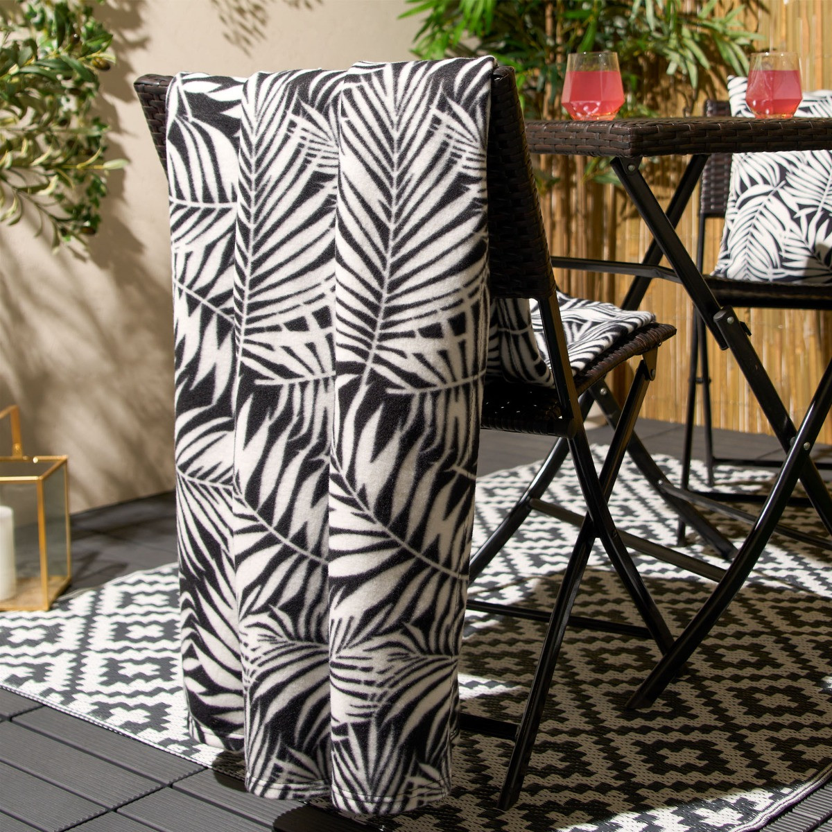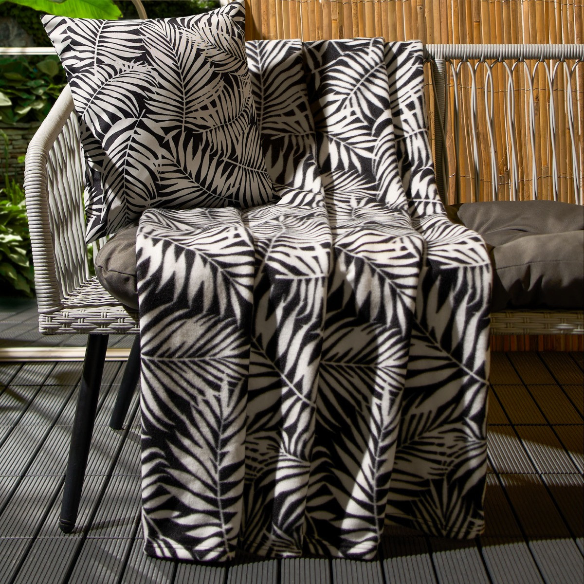 OHS Leaf Print Fleece Throw - Black/White