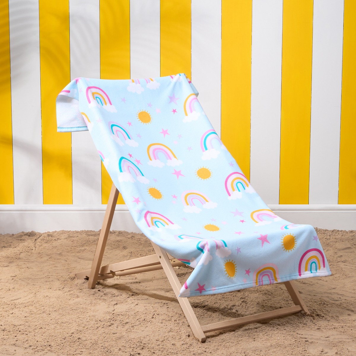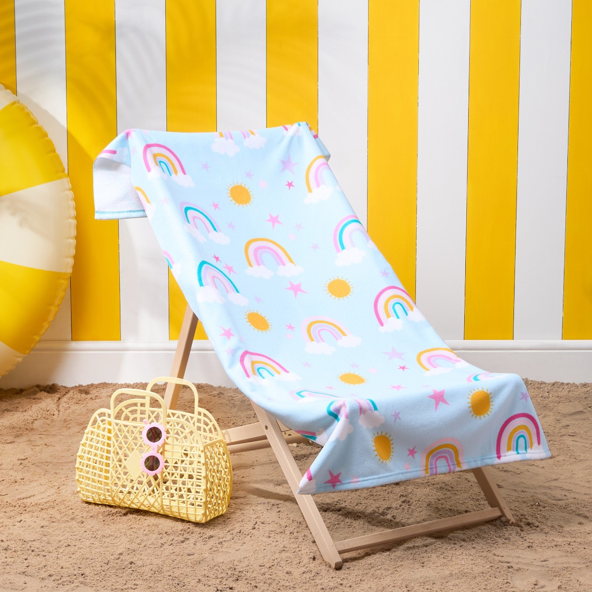 OHS Rainbow & Sun Print Beach Towel - Baby Blue