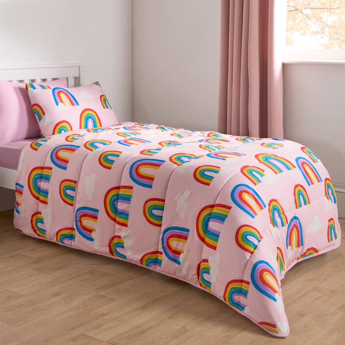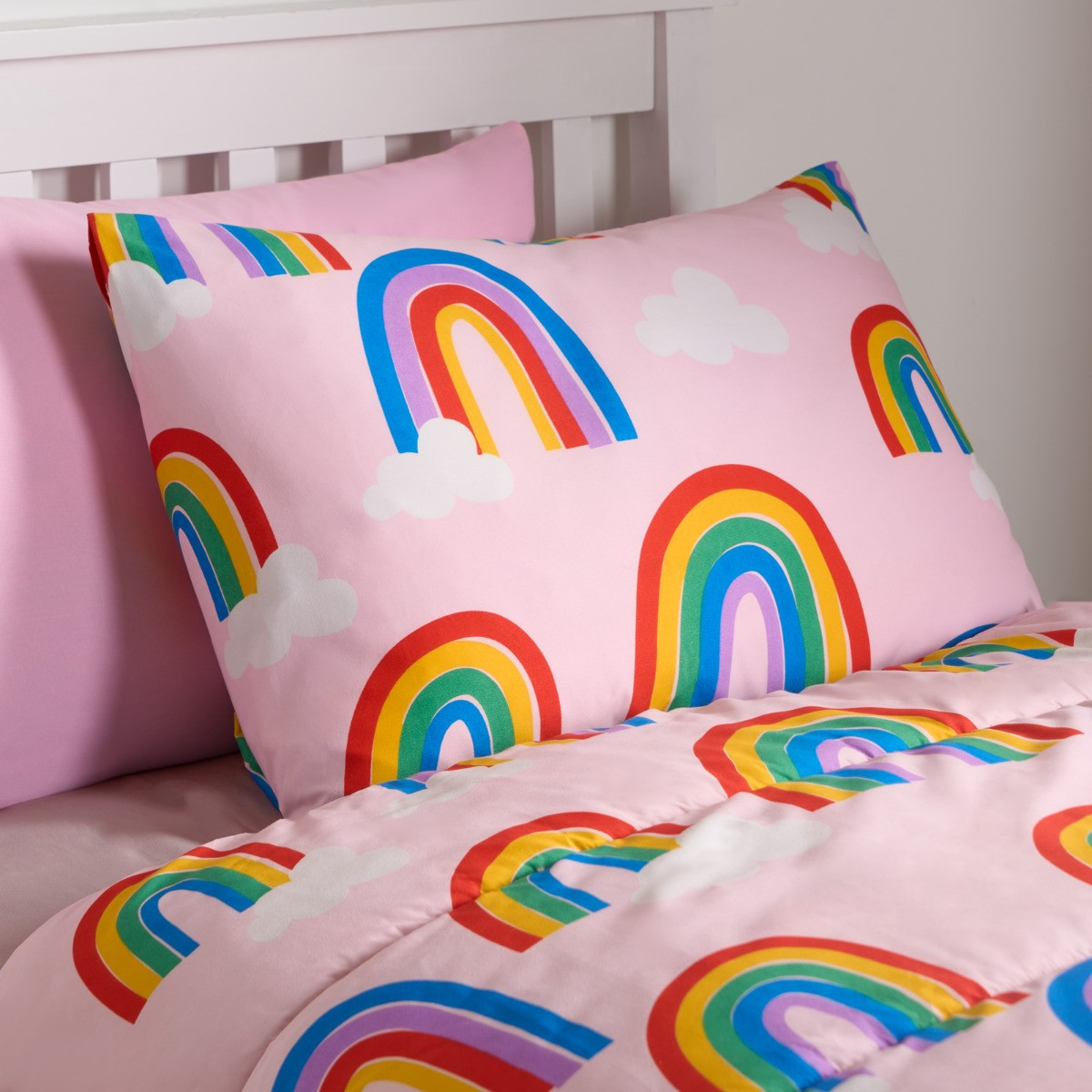 OHS Rainbows Coverless 10.5 Tog Duvet & Pillowcase, Pink - Single