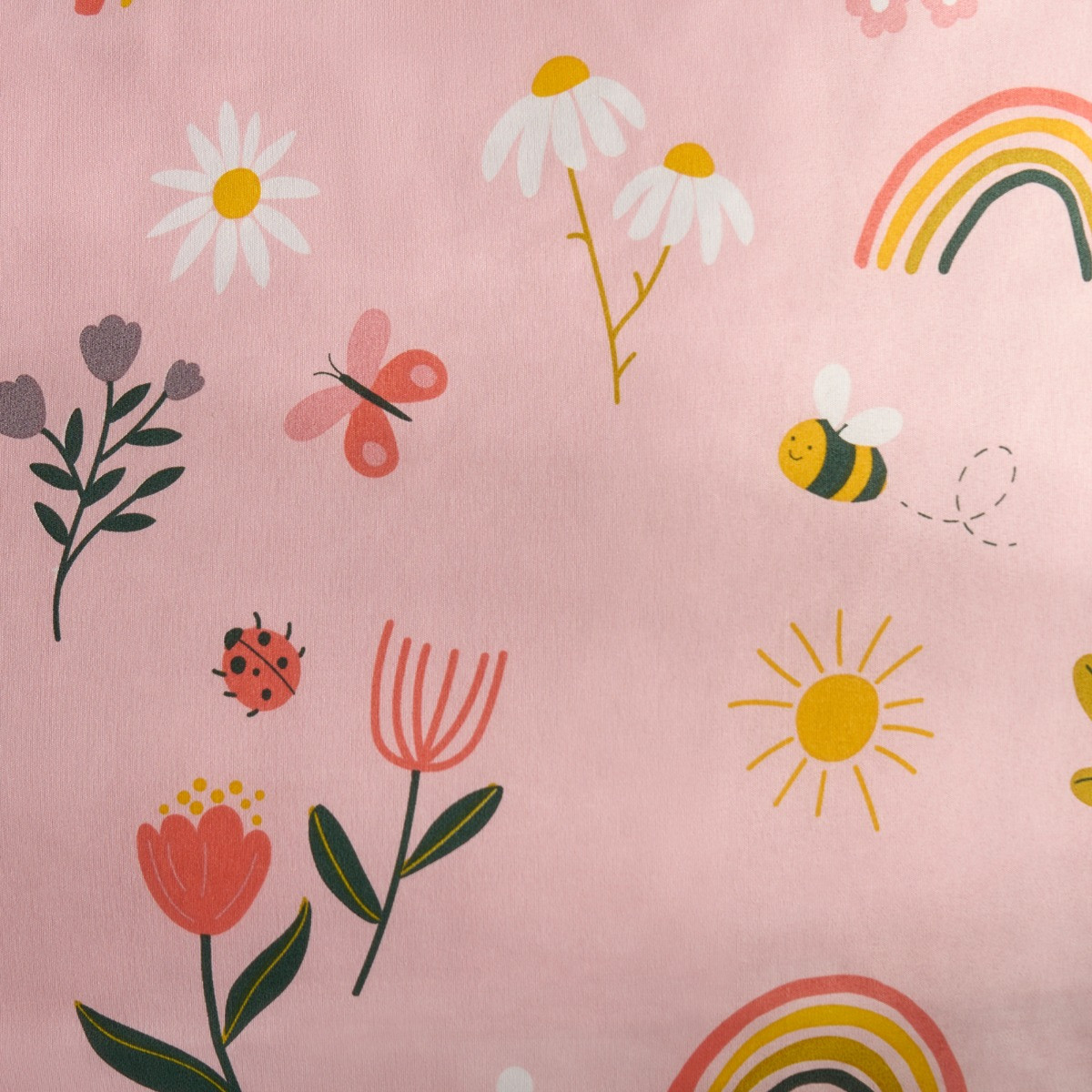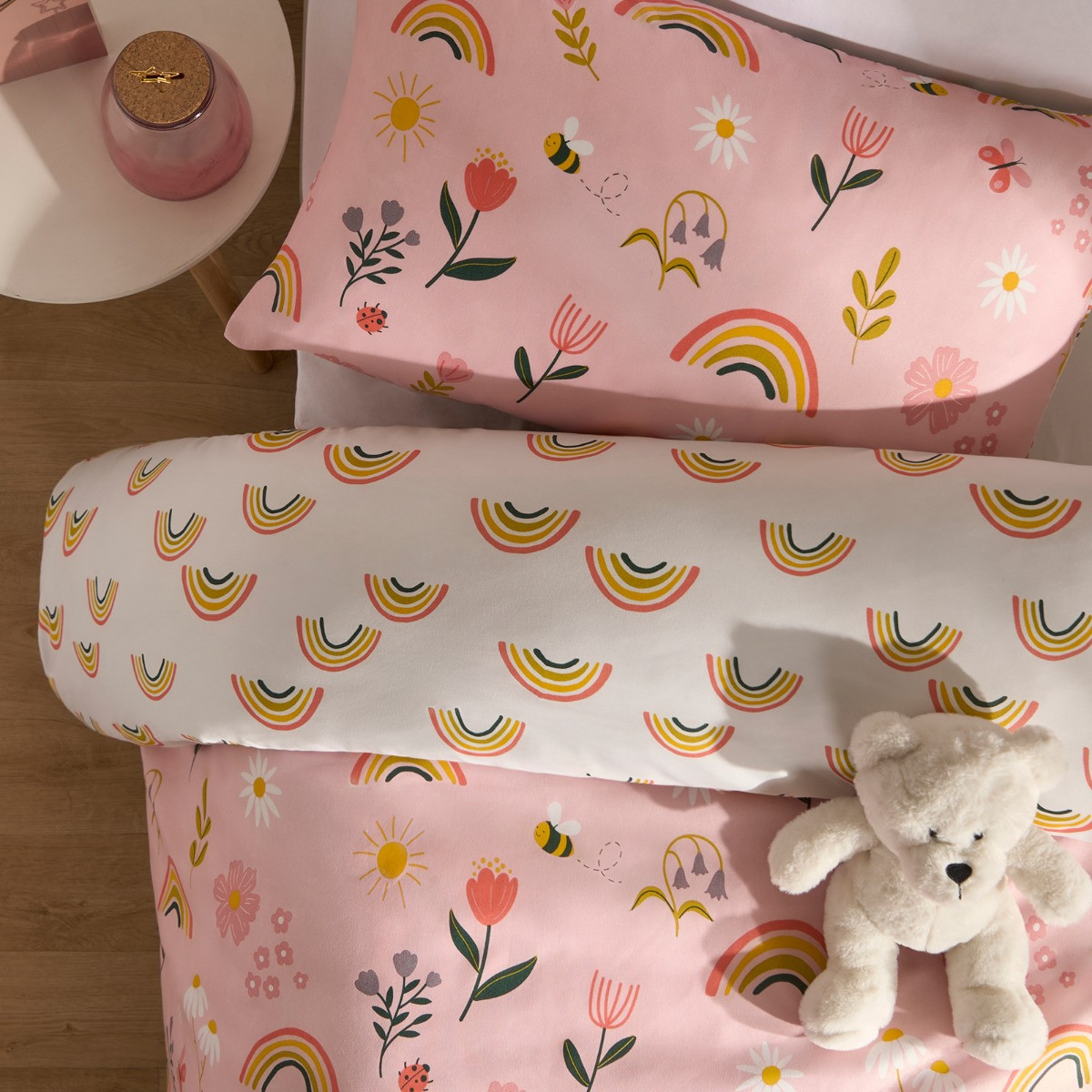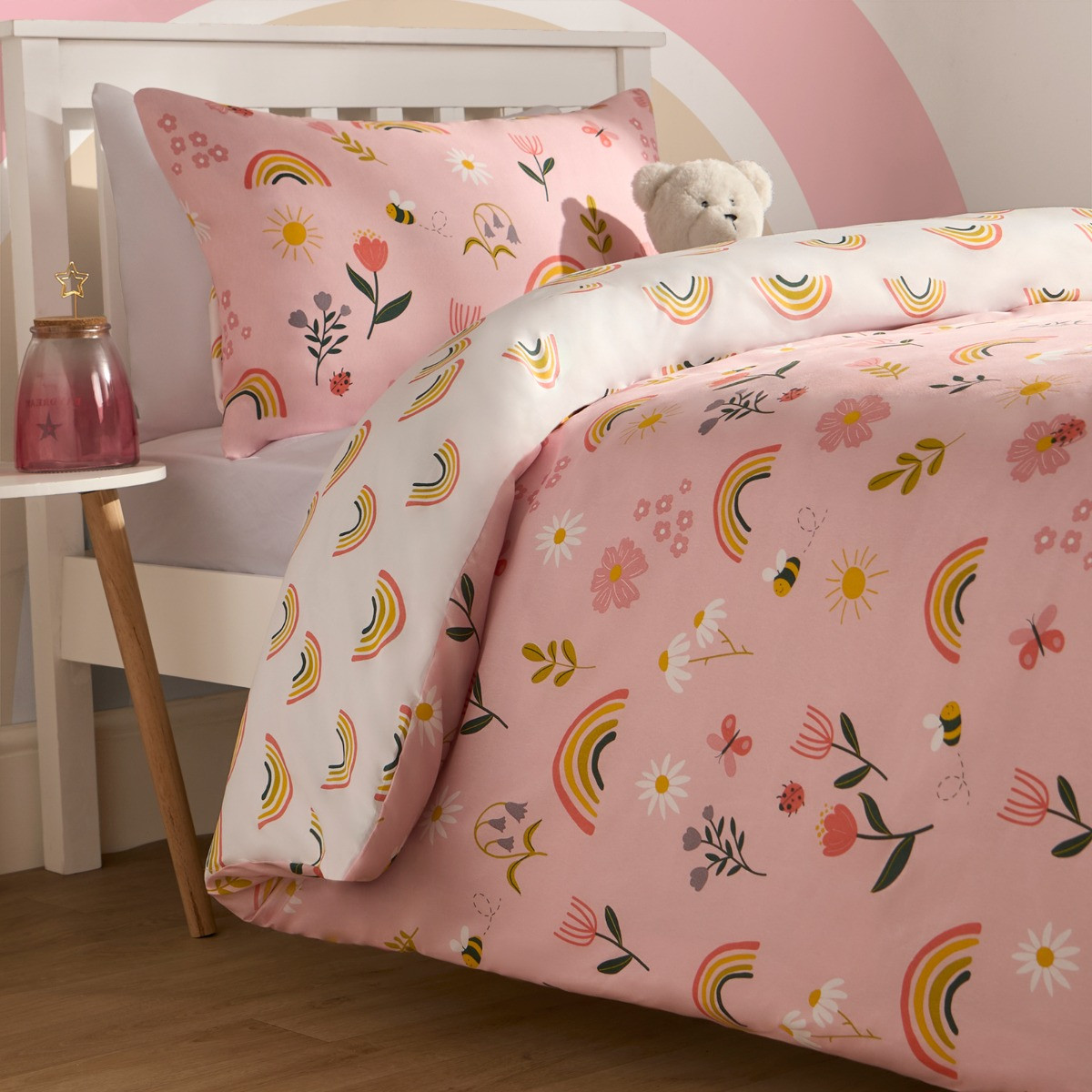 OHS Flowers and Rainbows Print Reversible Duvet Set - Pink