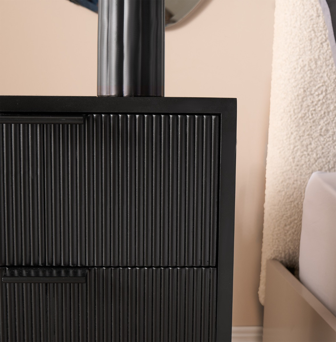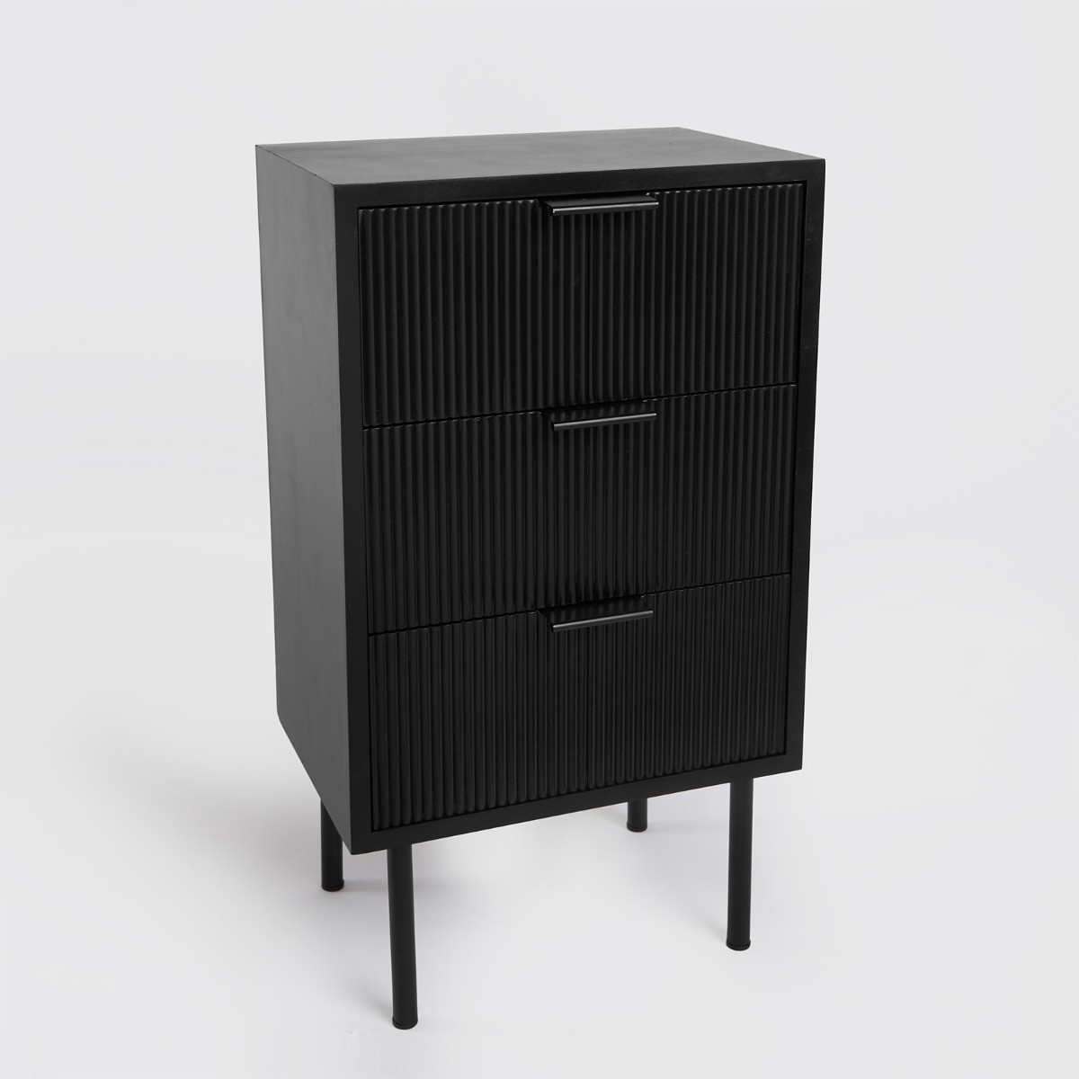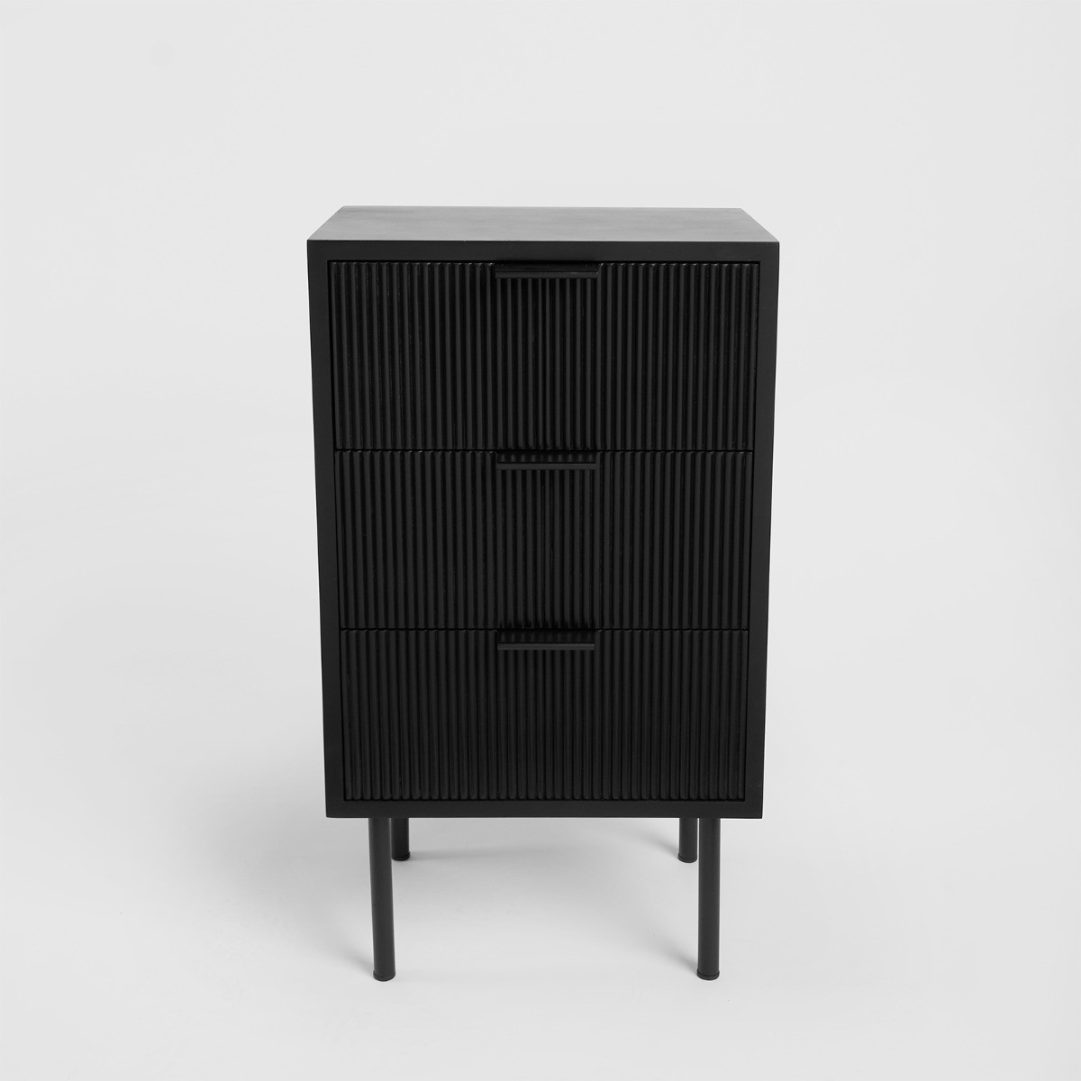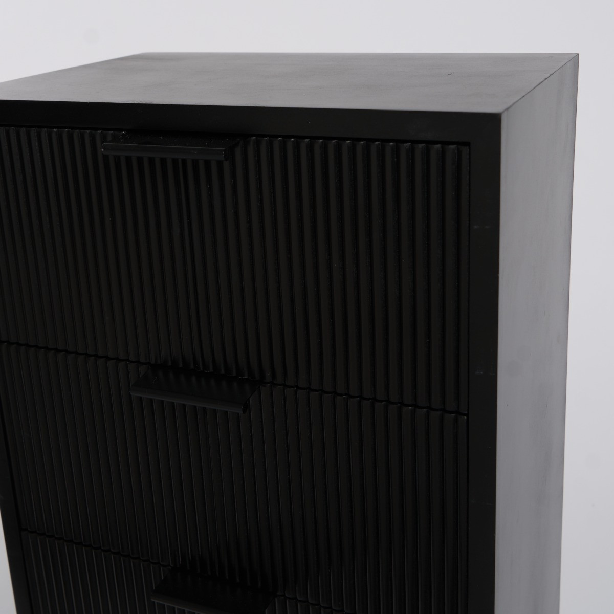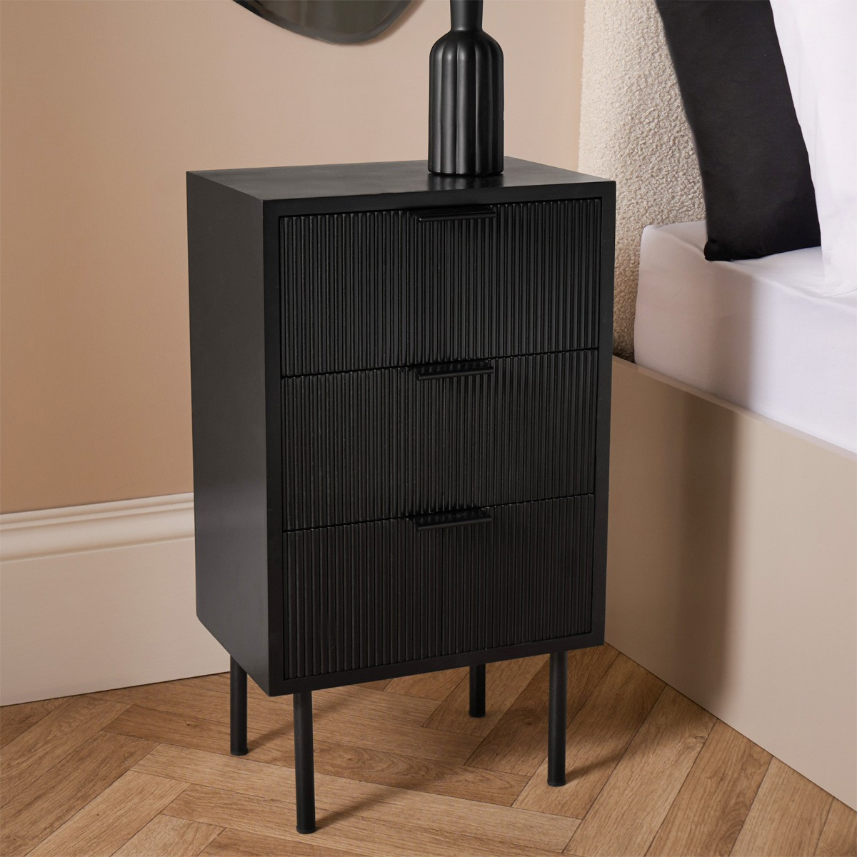 OHS Ribbed 3-Drawer Bedside Table - Black