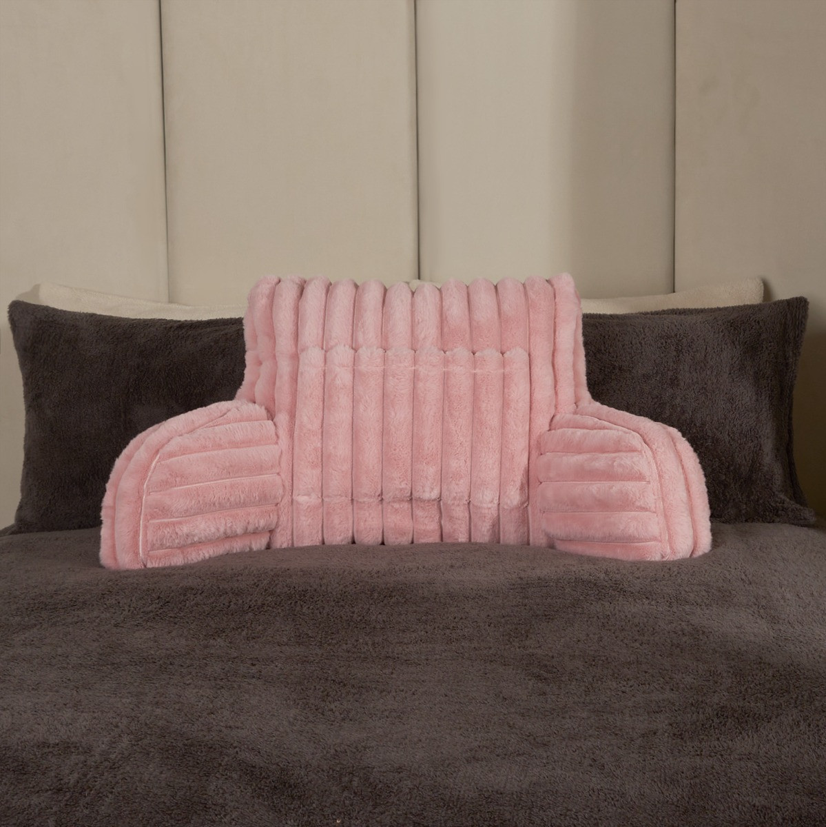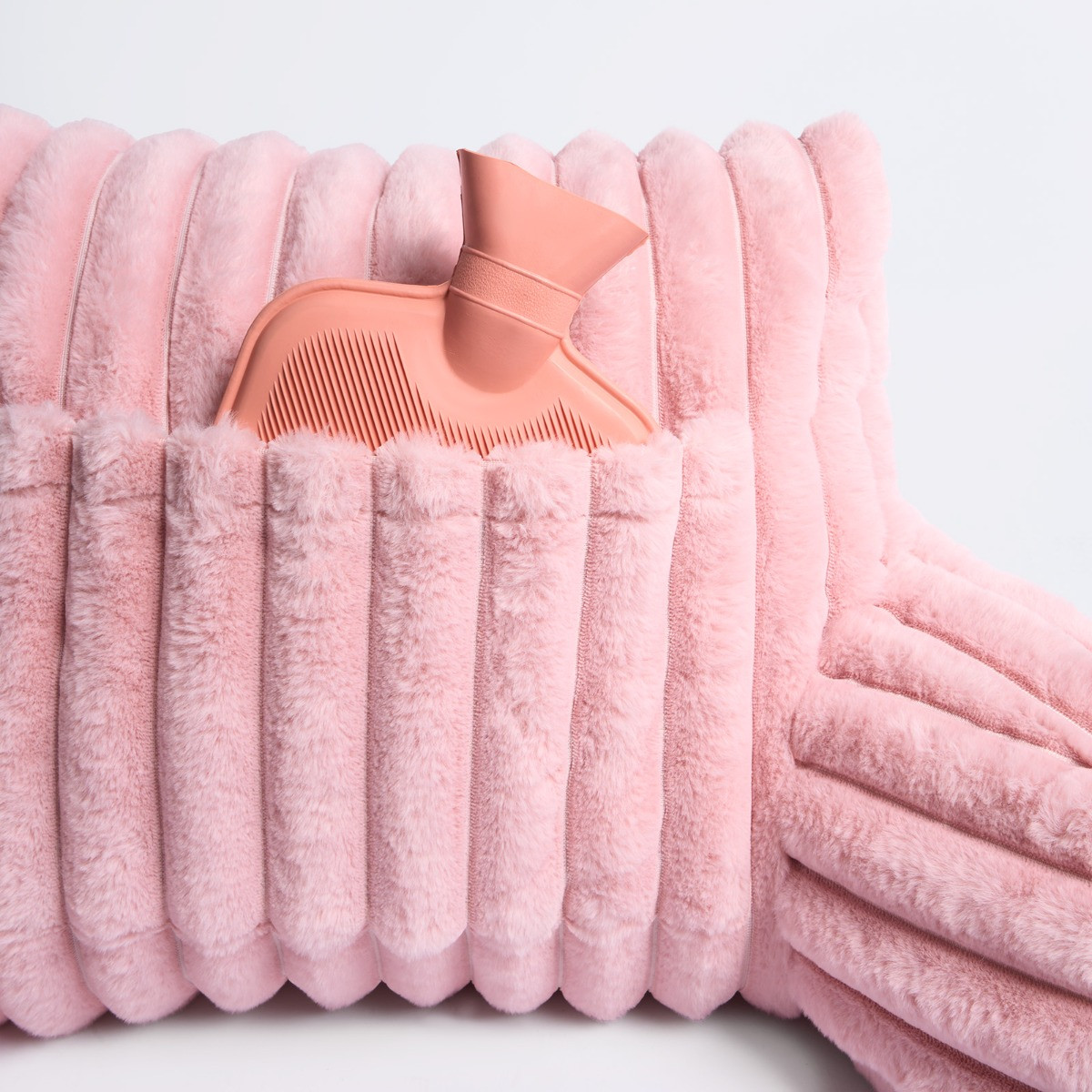 OHS Ribbed Faux Fur Cuddle Cushion with Heatable Pocket - Blush