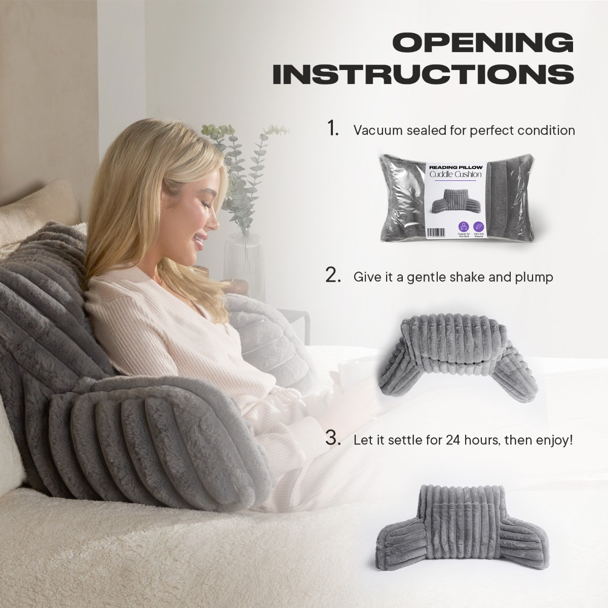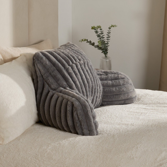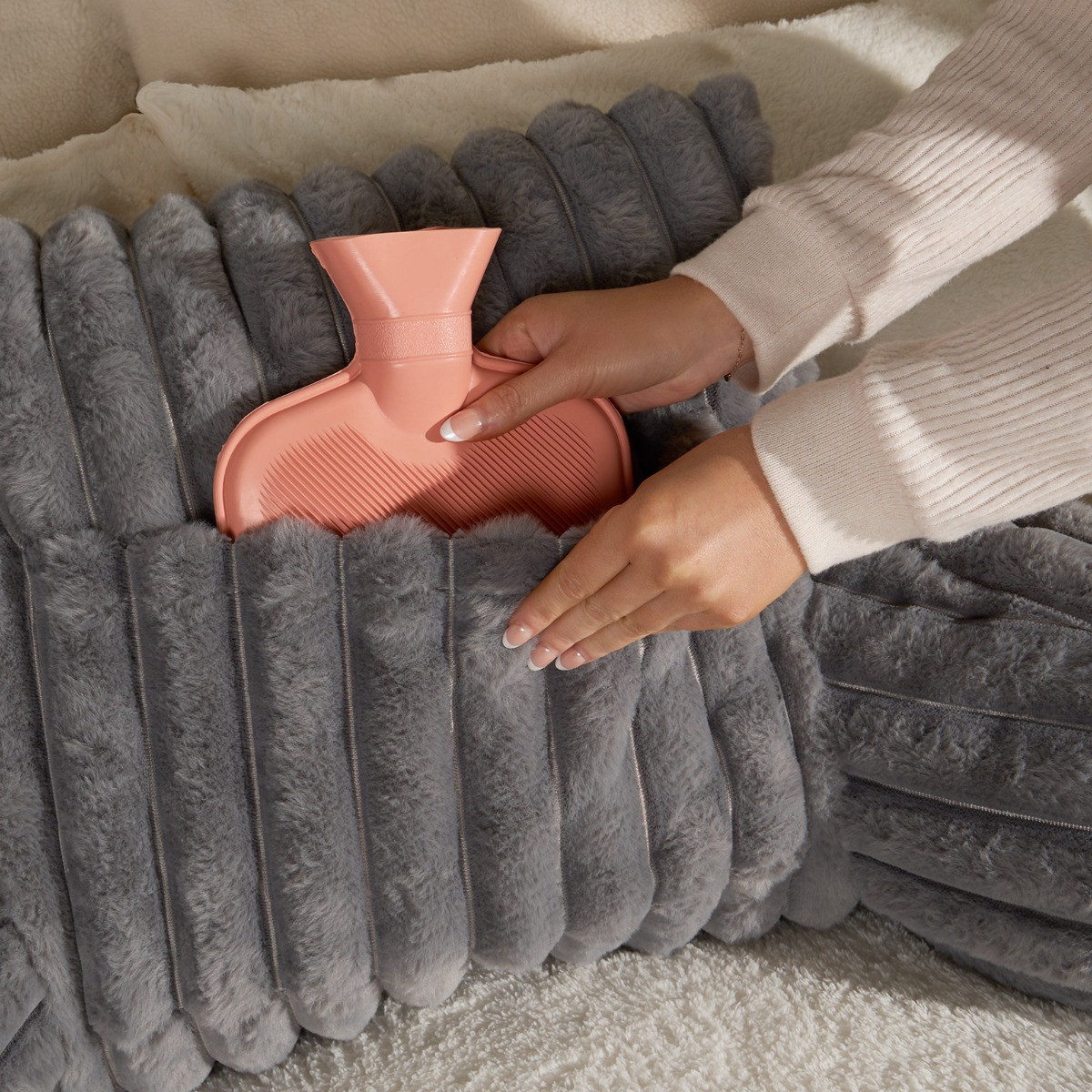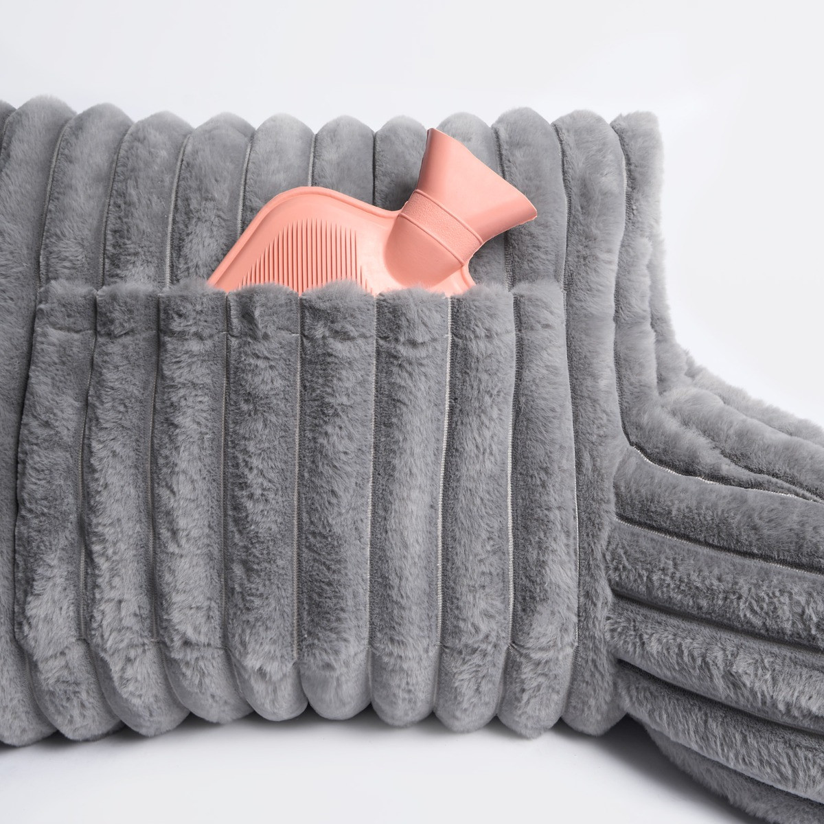 OHS Ribbed Faux Fur Cuddle Cushion with Heatable Pocket - Grey