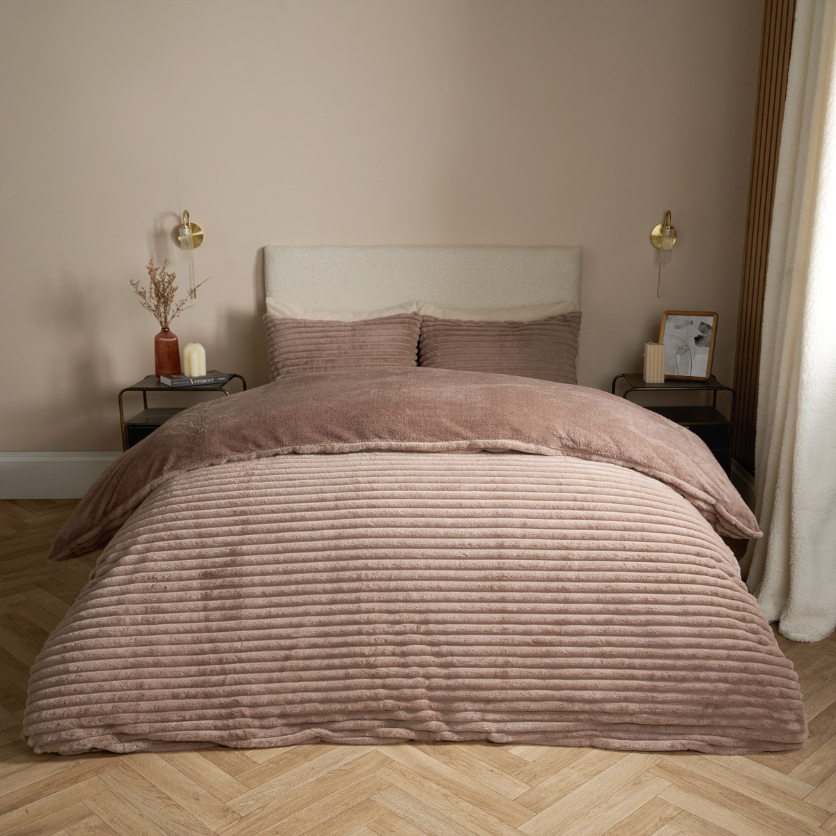 Refine your space with the understated luxury of the Ribbed Faux Fur Duvet Set from OHS. Crafted for quality and comfort with its teddy fleece material, this set brings a delicate touch of sophistication to any space with its fluffy, warm appeal. Choose the set best suited to your interior style from its three gorgeous colours on offer, and experience the supersoft sensation of this insulating set.