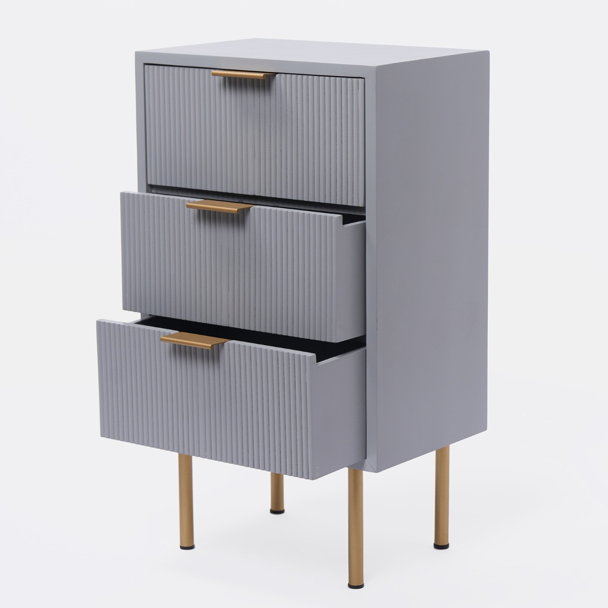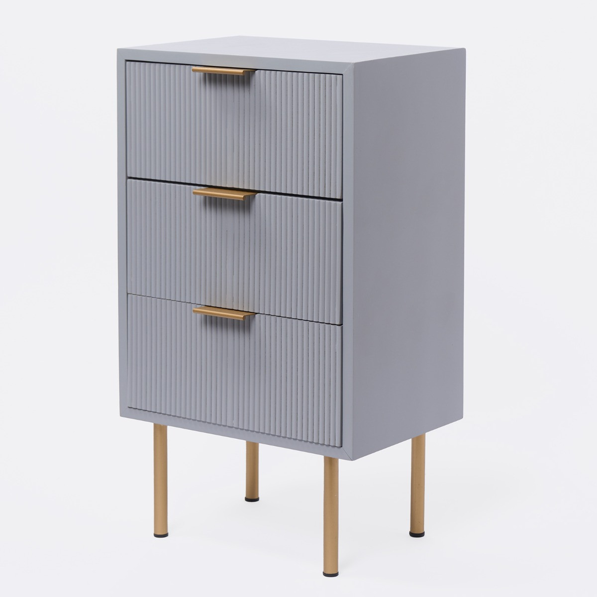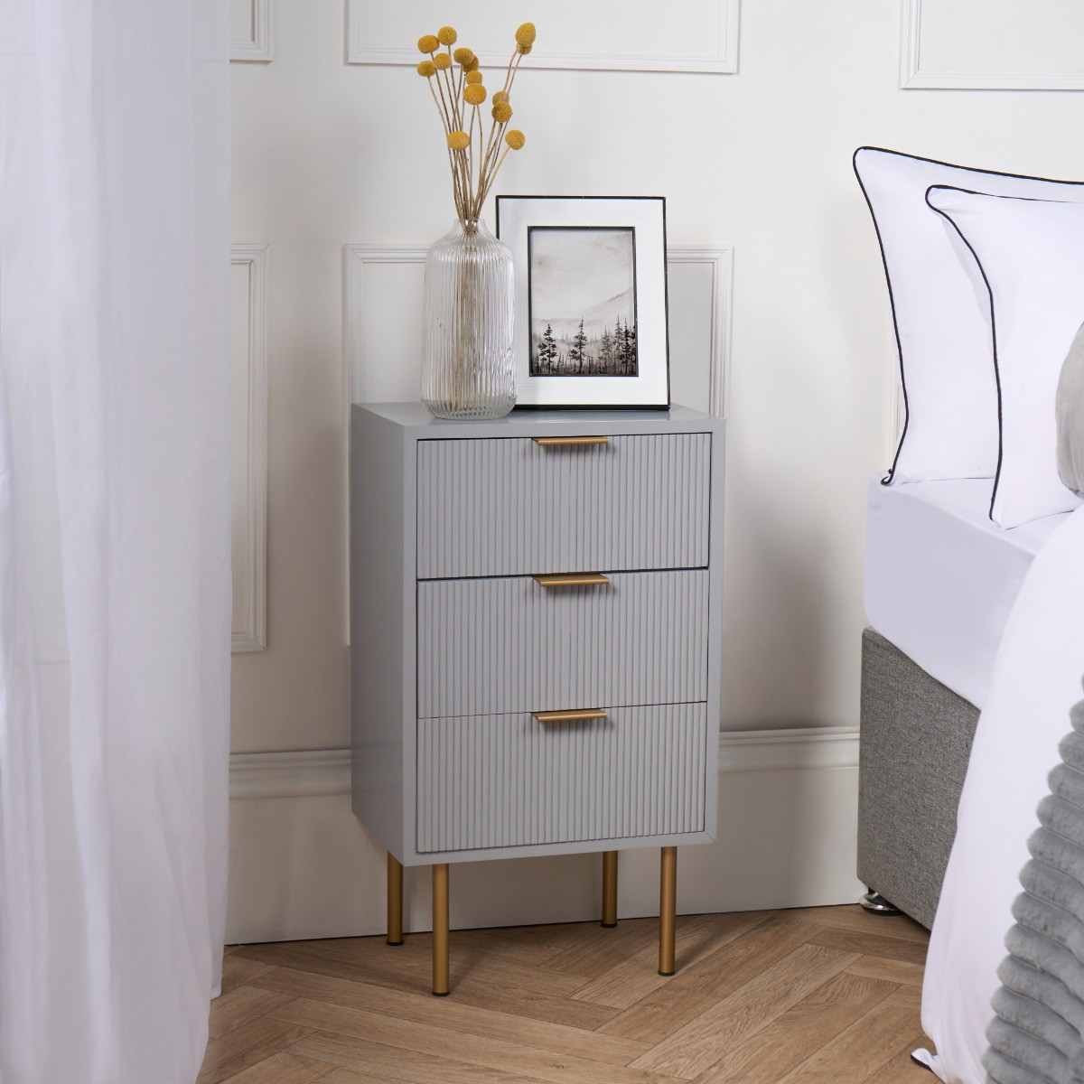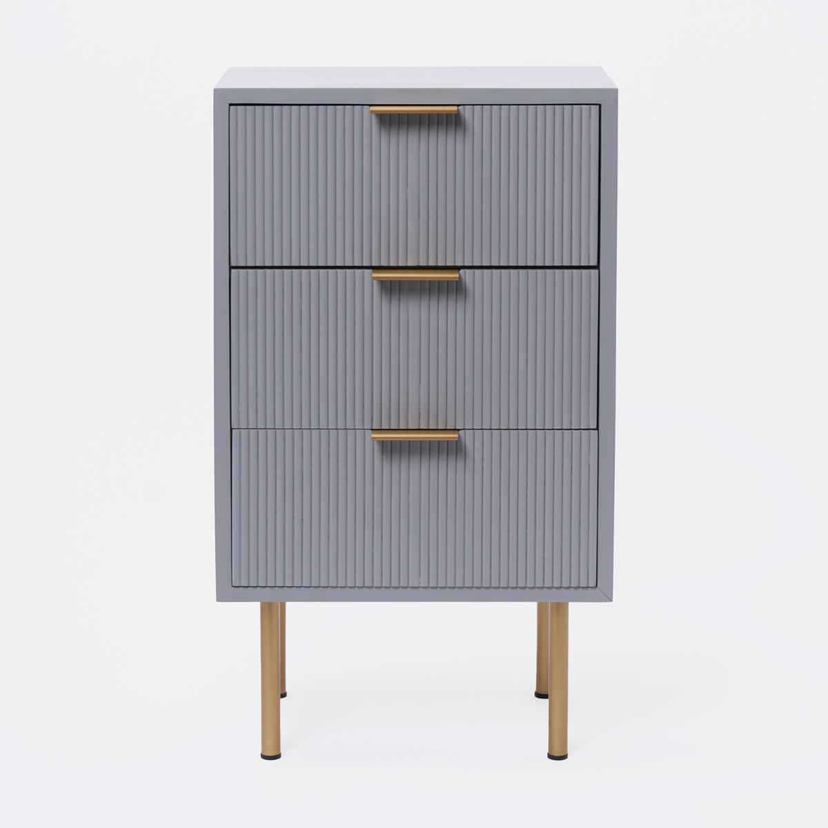 OHS Ribbed 3-Drawer Bedside Table - Grey