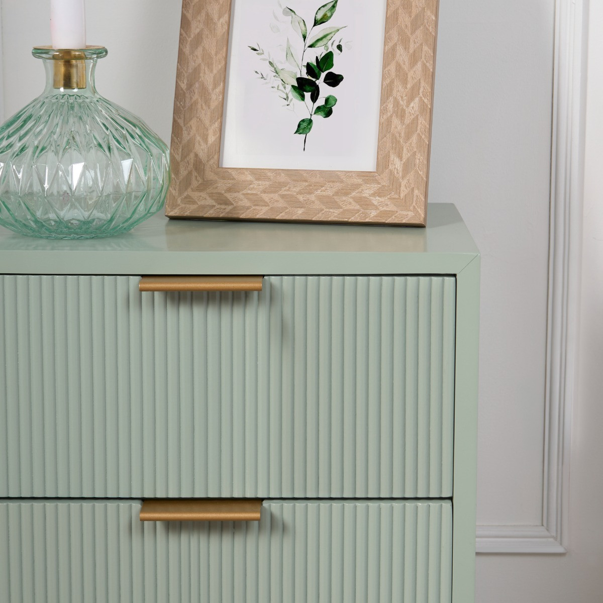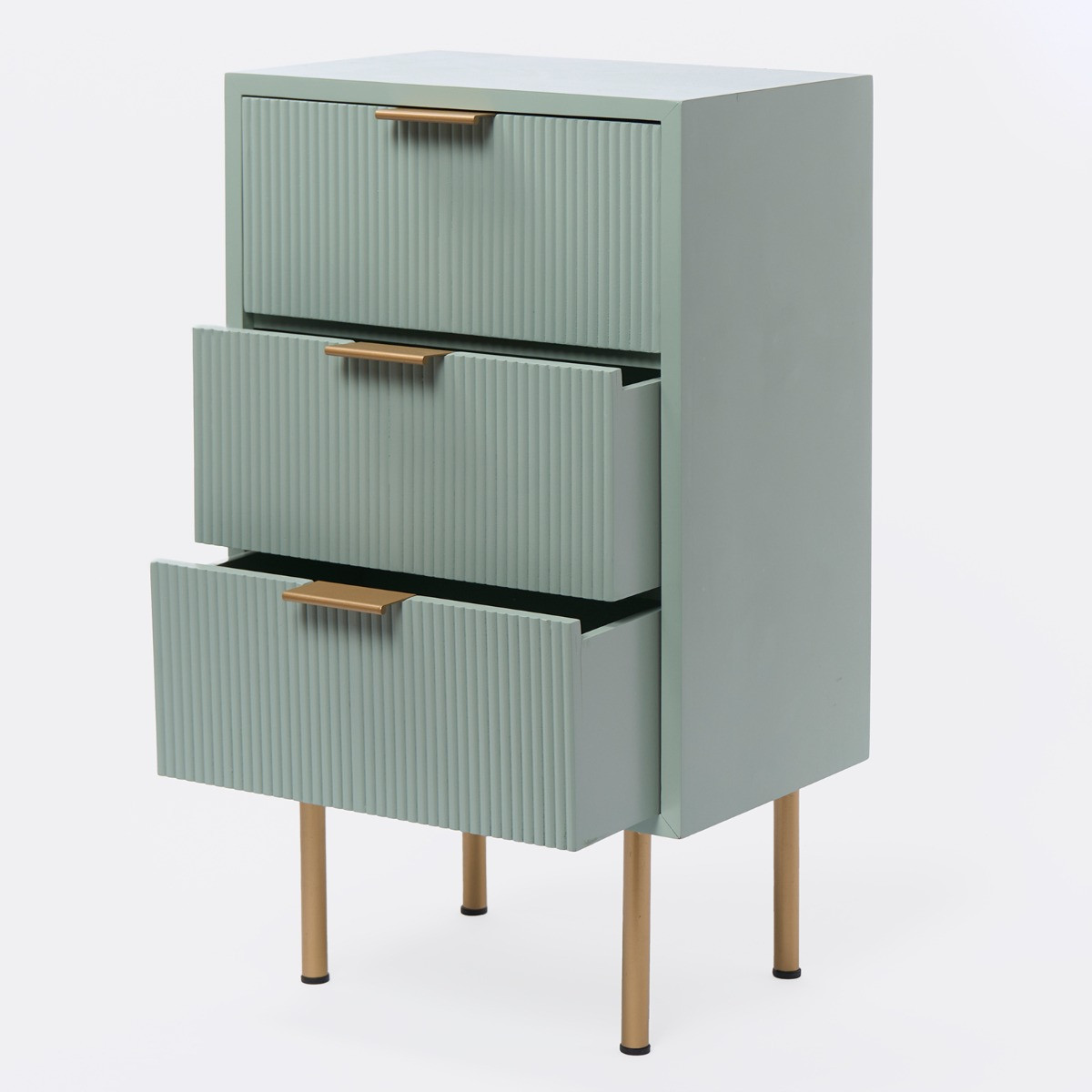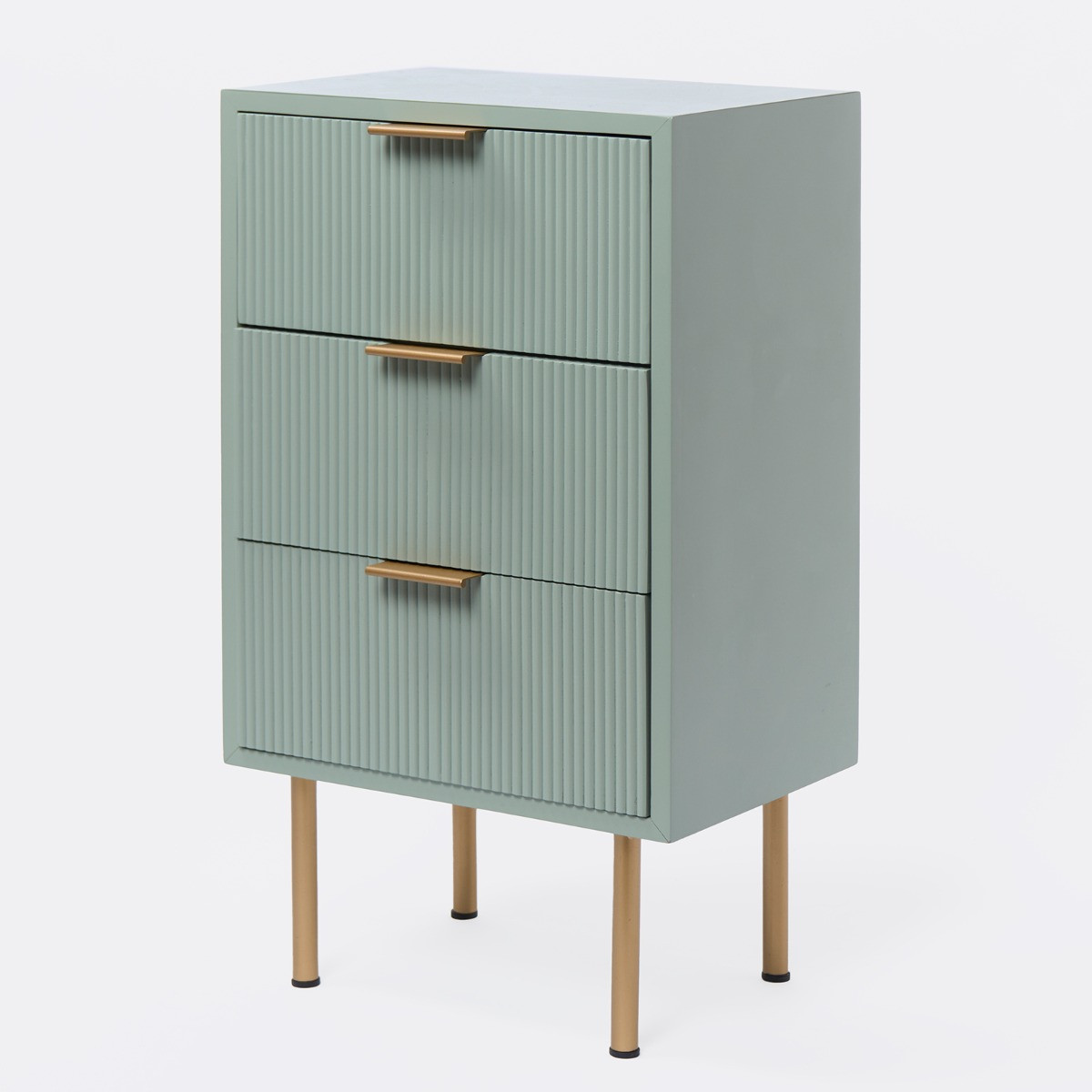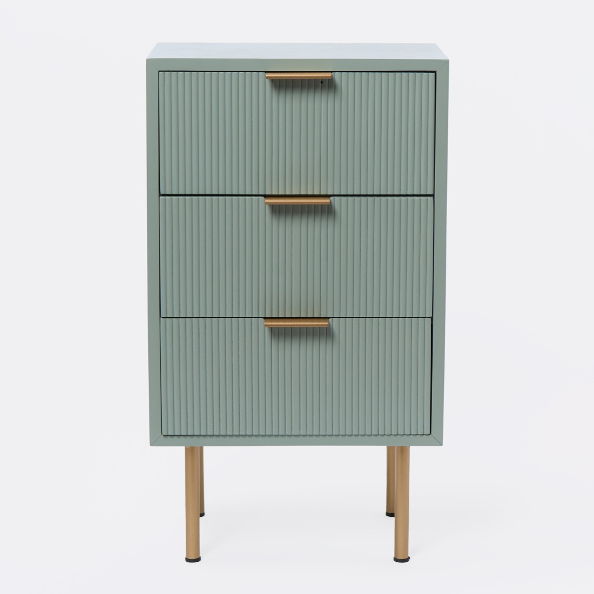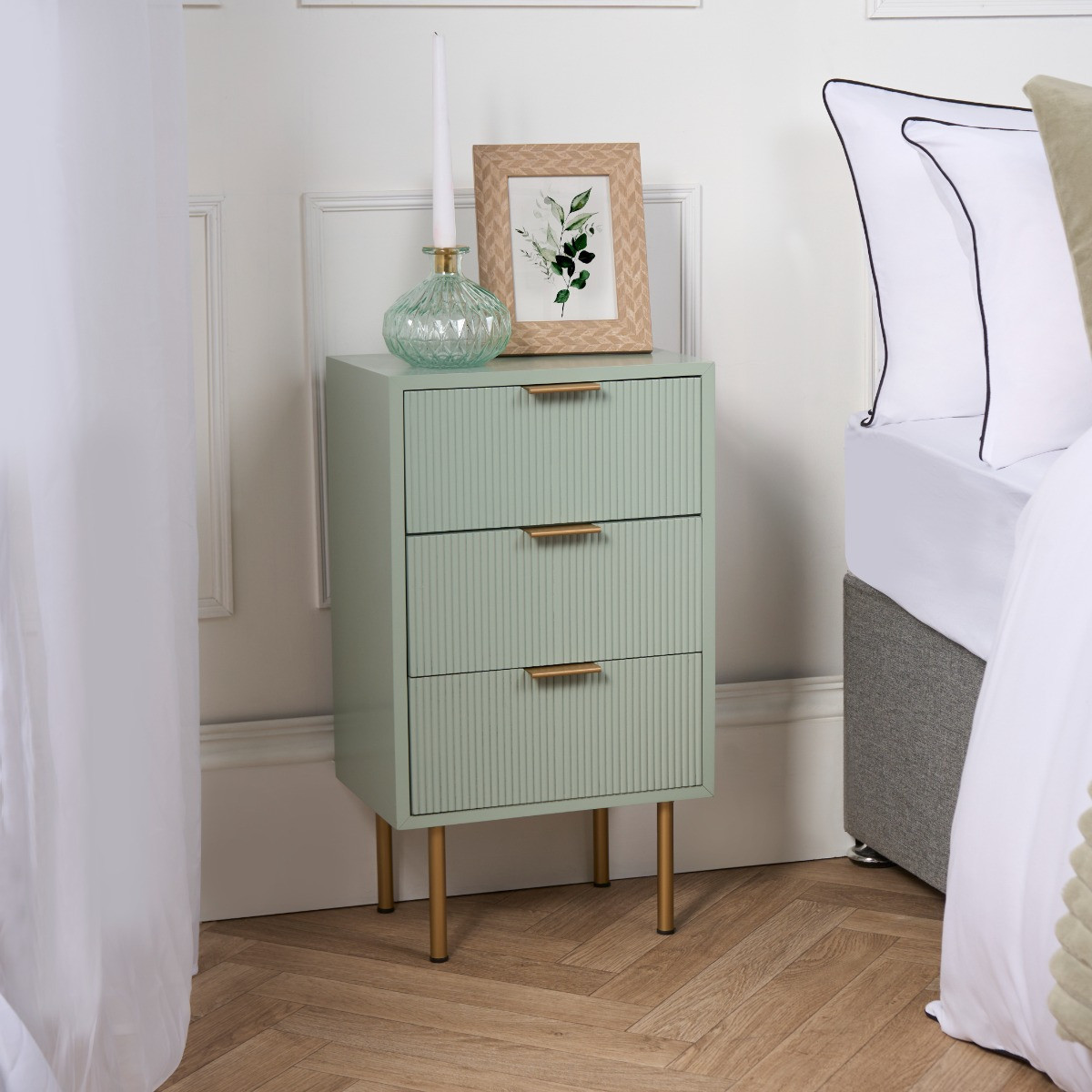 OHS Ribbed 3-Drawer Bedside Table - Sage Green