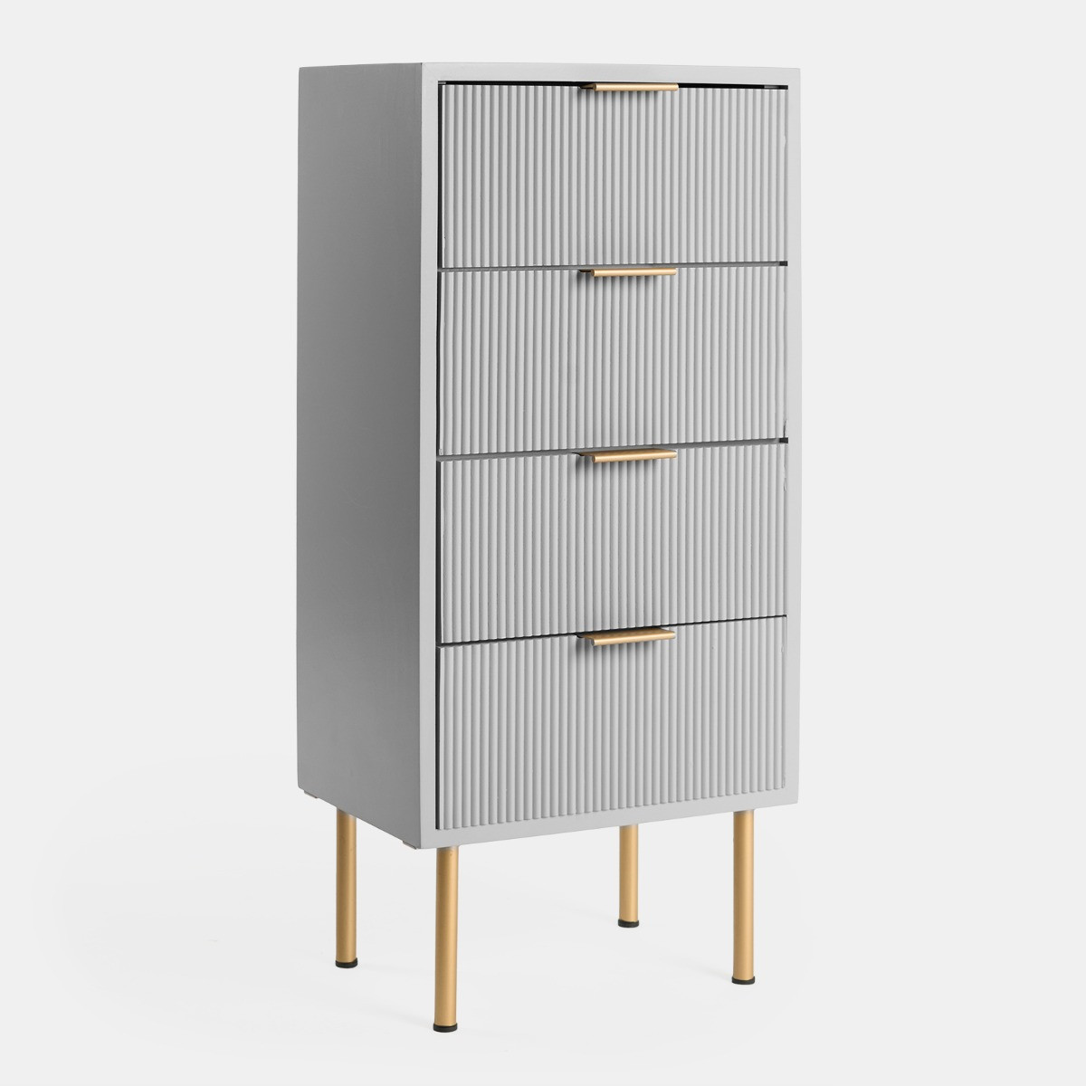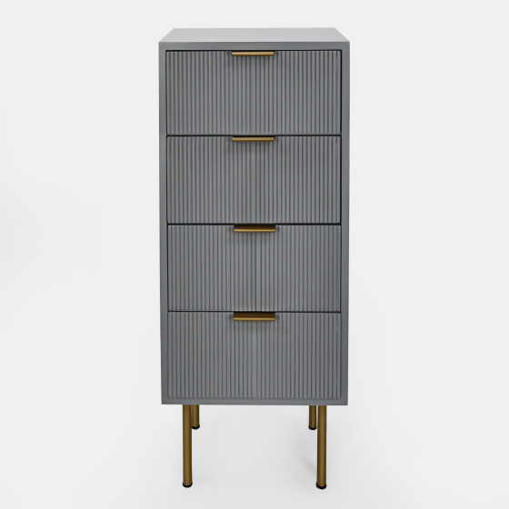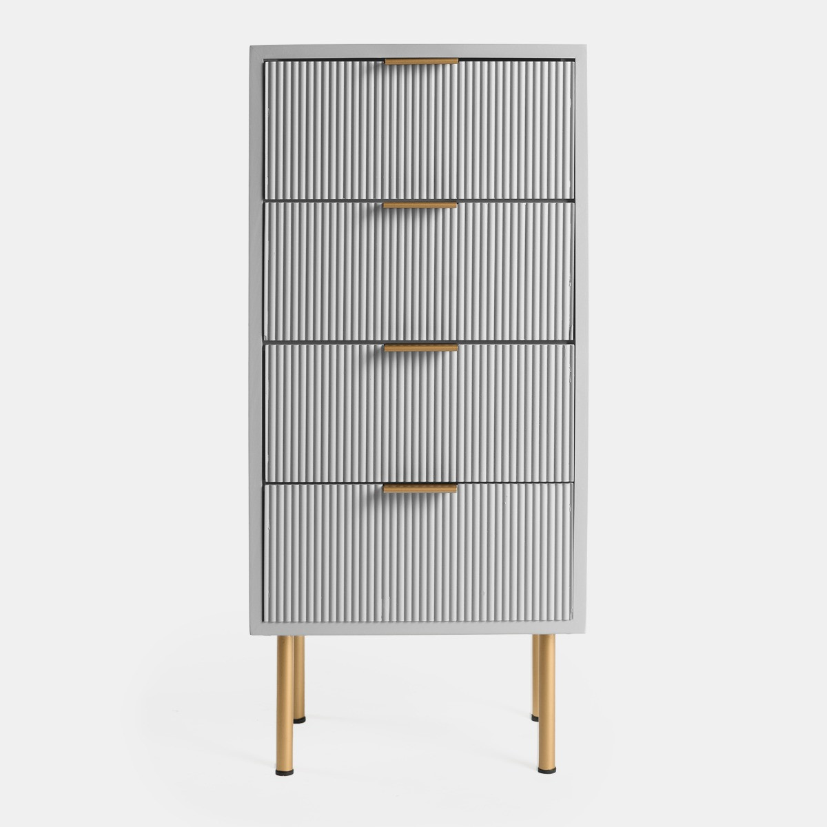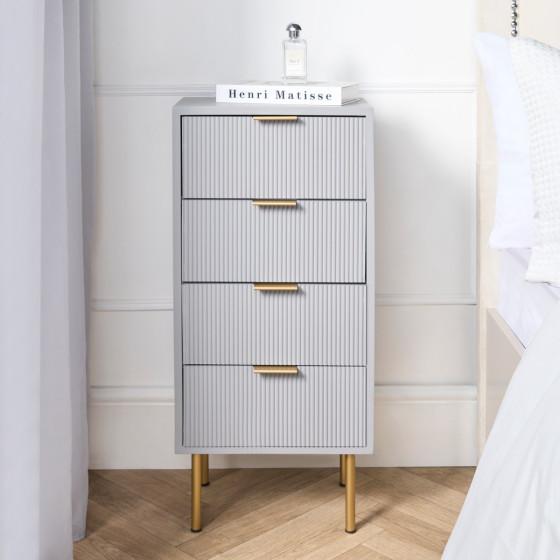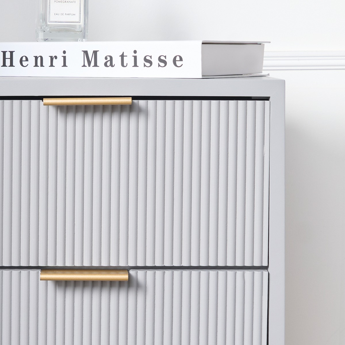 Add a touch of elegance and functionality to your bedroom with the OHS Ribbed 4-Drawer Unit. This beautifully designed unit combines classic aesthetics with practical storage solutions, making it a perfect addition to any bedroom decor. Its ribbed detailing and soft finish add a subtle sophistication, seamlessly blending with both contemporary and traditional interiors. With fourspacious drawers, it provides ample room for your essentials, helping you keep everything neatly organised. Crafted from durable wood, this unit is built to last, offering both style and convenience for years to come.