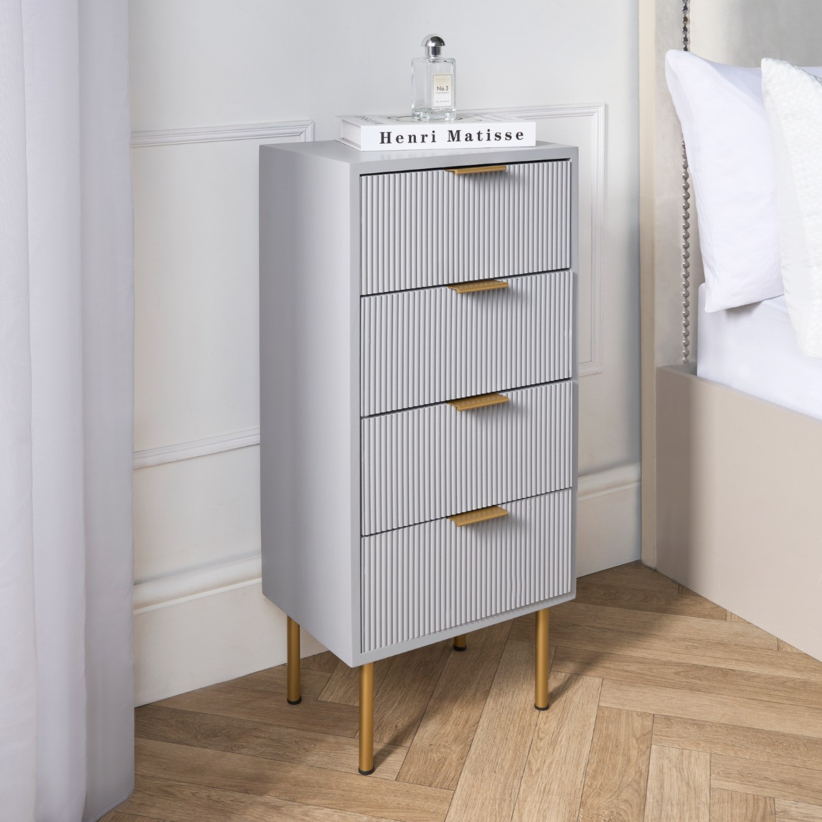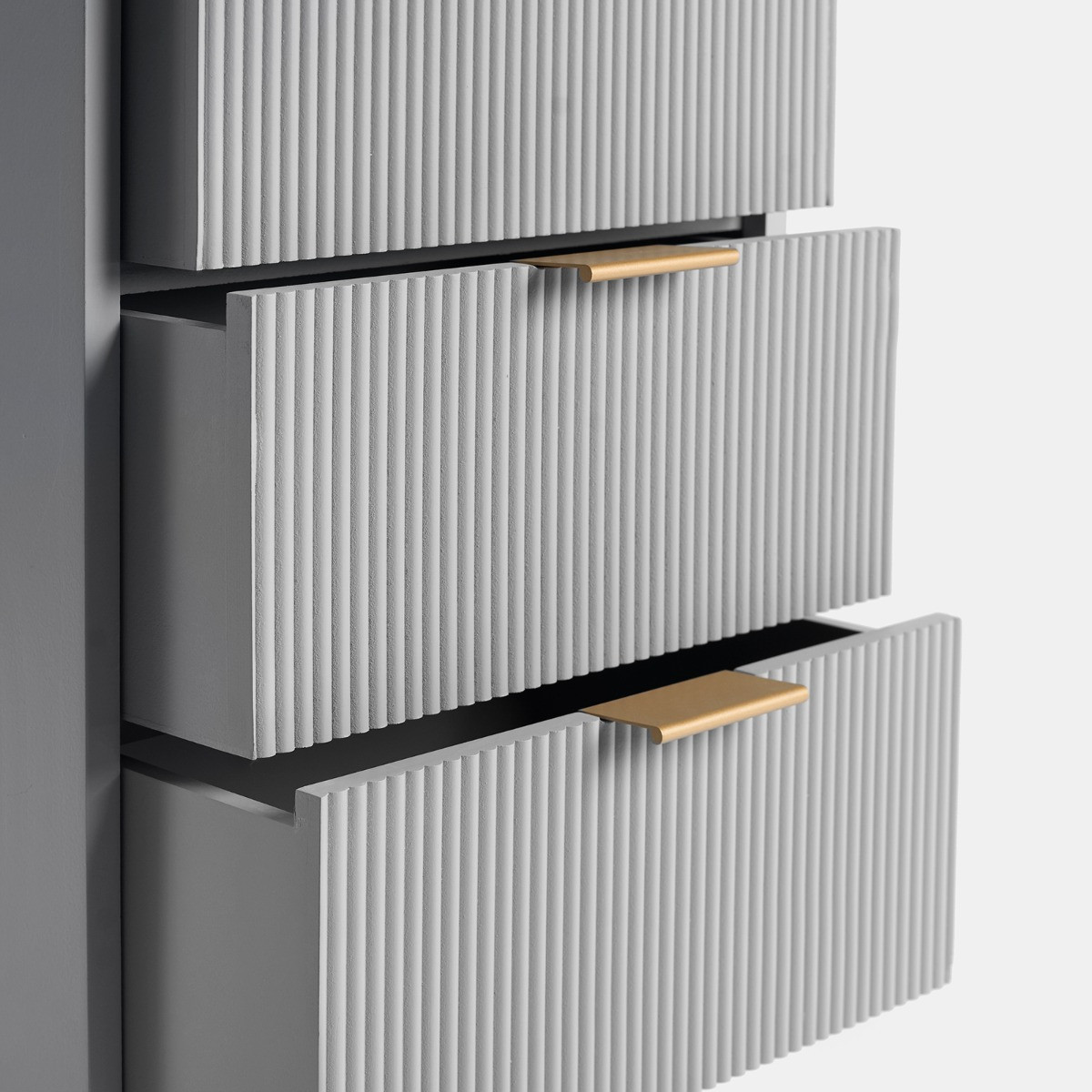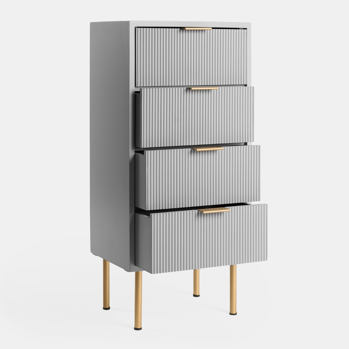 Add a touch of elegance and functionality to your bedroom with the OHS Ribbed 4-Drawer Unit. This beautifully designed unit combines classic aesthetics with practical storage solutions, making it a perfect addition to any bedroom decor. Its ribbed detailing and soft finish add a subtle sophistication, seamlessly blending with both contemporary and traditional interiors. With fourspacious drawers, it provides ample room for your essentials, helping you keep everything neatly organised. Crafted from durable wood, this unit is built to last, offering both style and convenience for years to come.