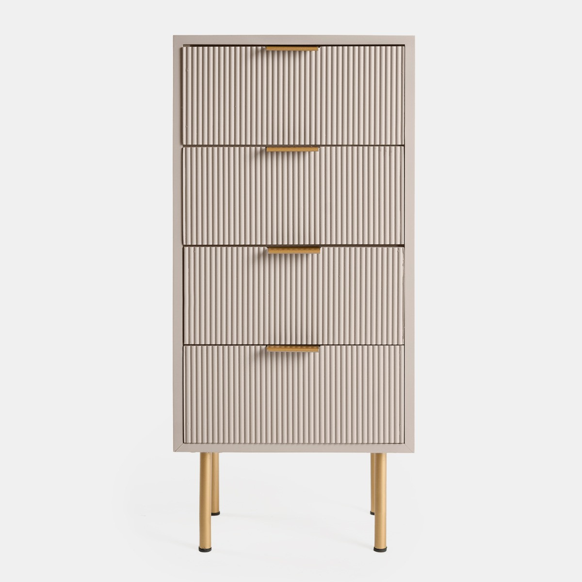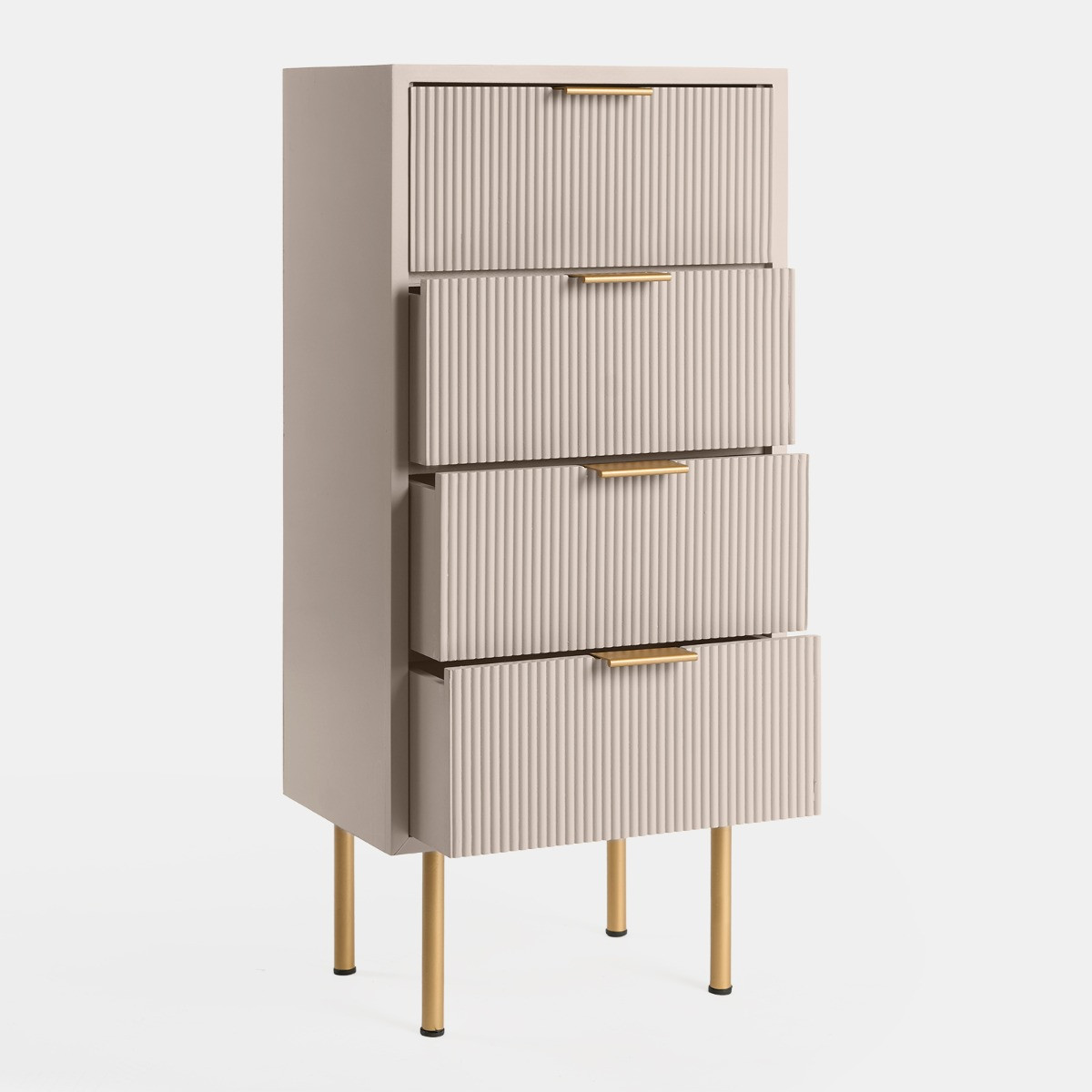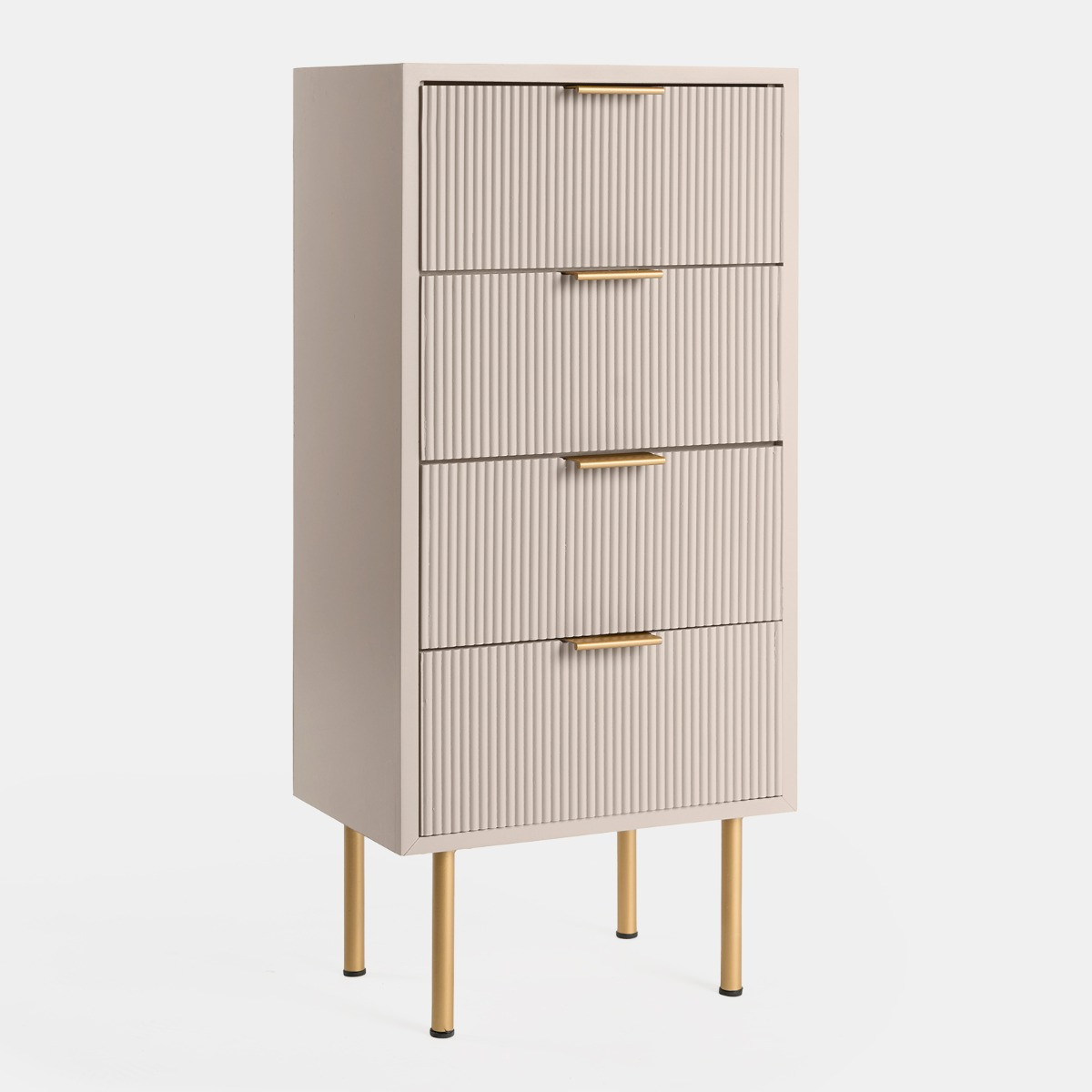 Add a touch of elegance and functionality to your bedroom with the OHS Ribbed 4-Drawer Unit. This beautifully designed unit combines classic aesthetics with practical storage solutions, making it a perfect addition to any bedroom decor. Its ribbed detailing and soft finish add a subtle sophistication, seamlessly blending with both contemporary and traditional interiors. With fourspacious drawers, it provides ample room for your essentials, helping you keep everything neatly organised. Crafted from durable wood, this unit is built to last, offering both style and convenience for years to come.