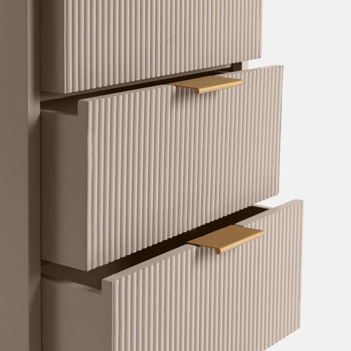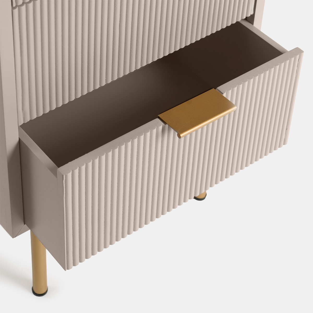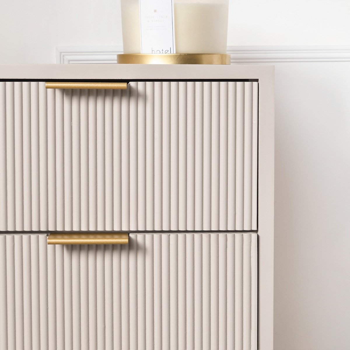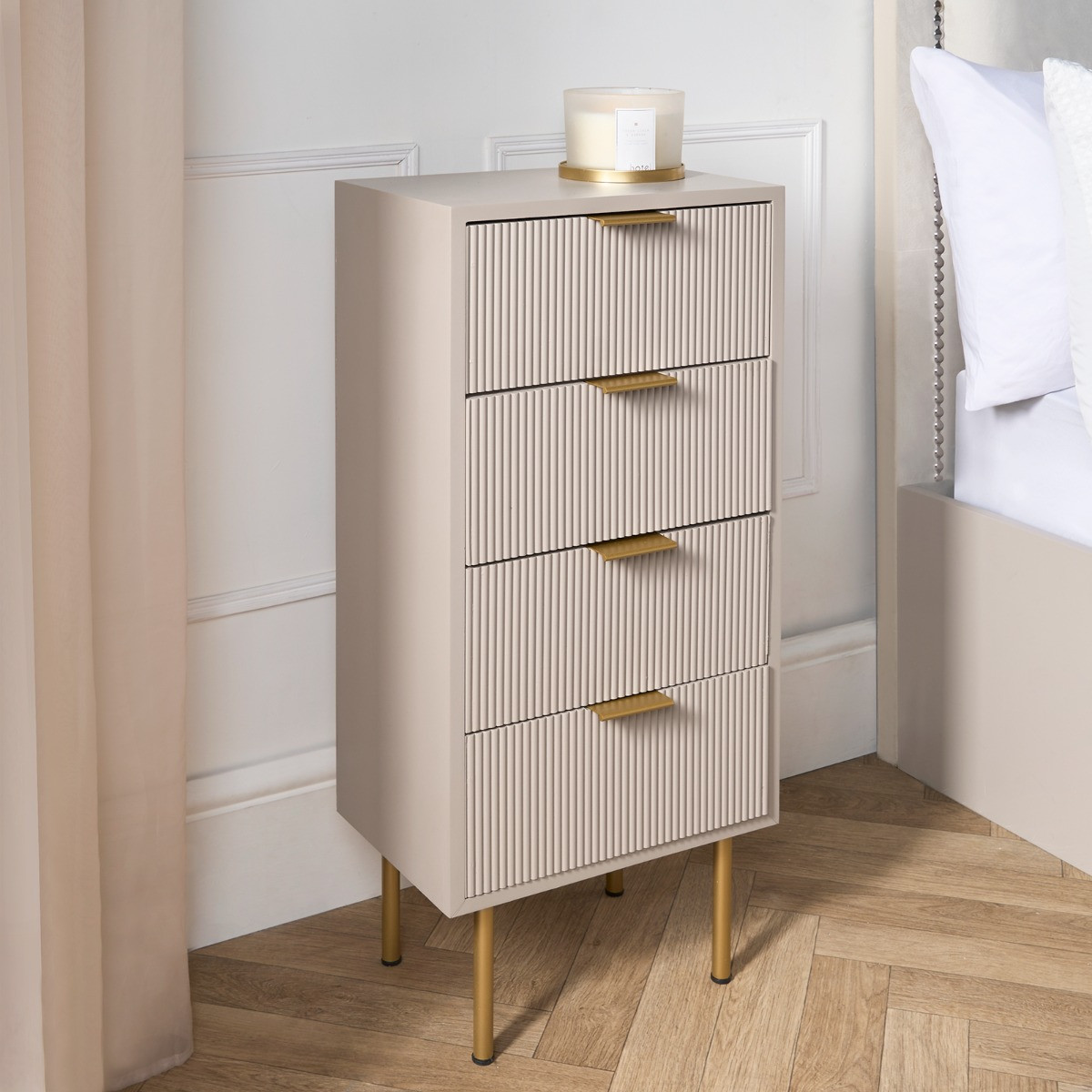 Add a touch of elegance and functionality to your bedroom with the OHS Ribbed 4-Drawer Unit. This beautifully designed unit combines classic aesthetics with practical storage solutions, making it a perfect addition to any bedroom decor. Its ribbed detailing and soft finish add a subtle sophistication, seamlessly blending with both contemporary and traditional interiors. With fourspacious drawers, it provides ample room for your essentials, helping you keep everything neatly organised. Crafted from durable wood, this unit is built to last, offering both style and convenience for years to come.