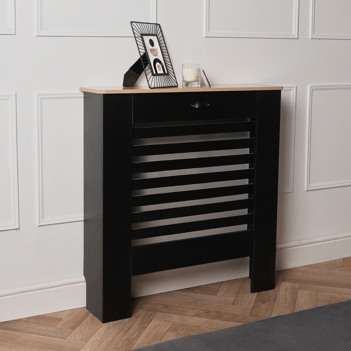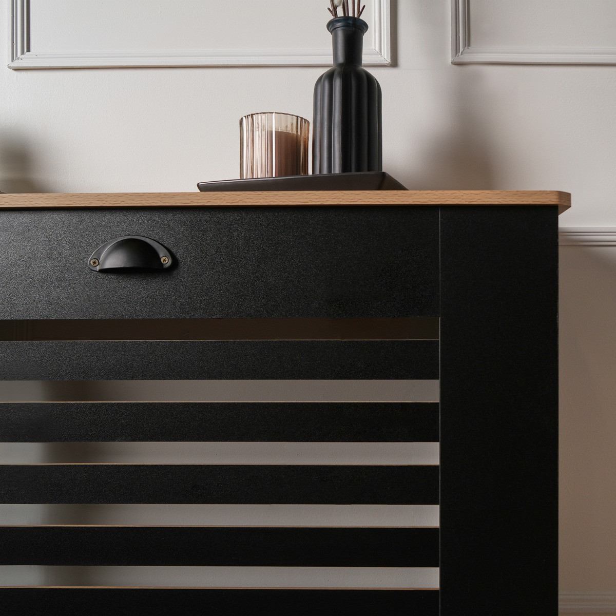 The OHS Wooden Radiator Cover in Black is a stylish and practical solution to enhance your home's interior while maximizing space and safety. Featuring a sleek and classic black finish, this radiator cover seamlessly blends with any decor style, from modern to traditional. The clean lines and minimalist design add a touch of sophistication to your living space.