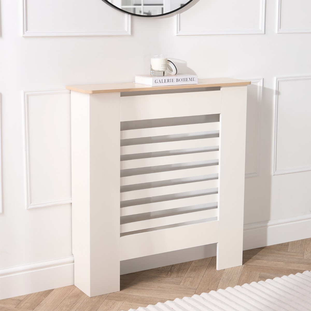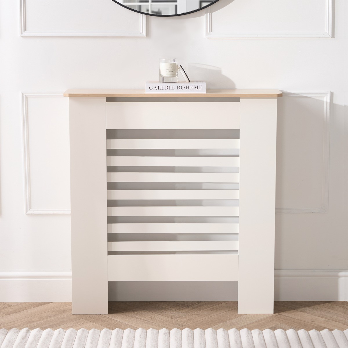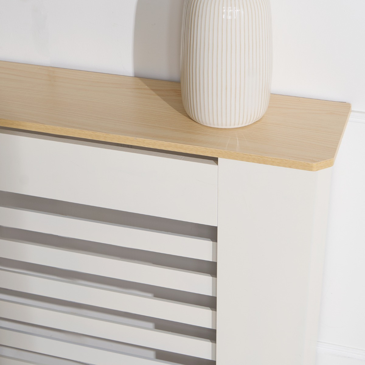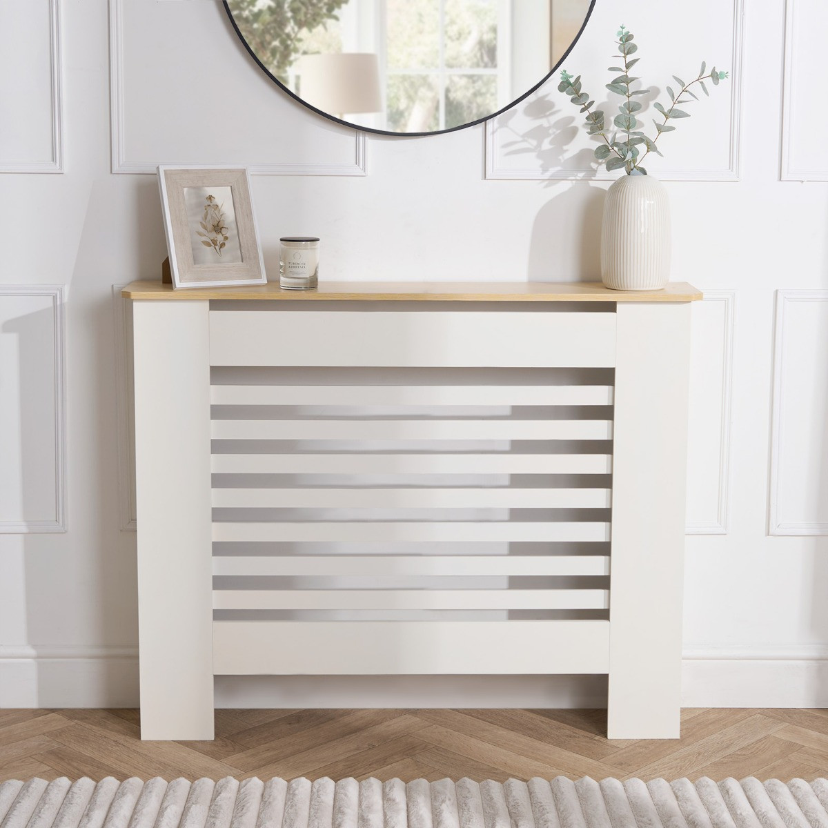 OHS Small Wooden Radiator Cover with Oak Look Top - Cream