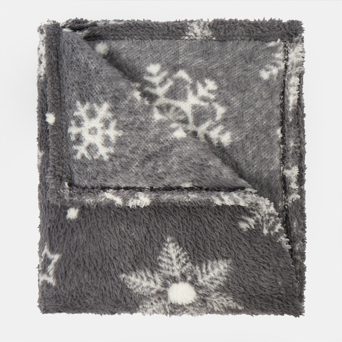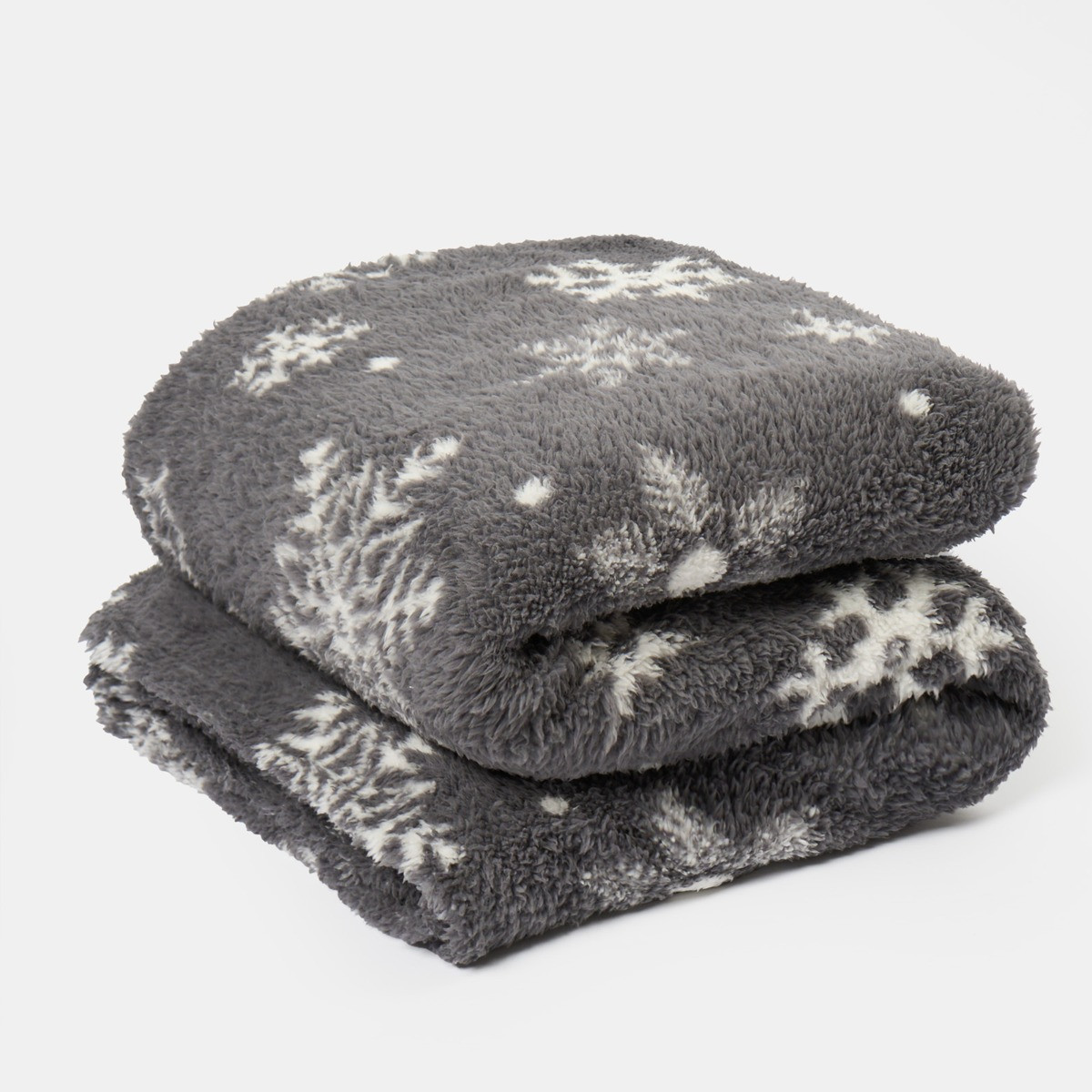 OHS Snowflake Print Teddy Throw - Grey