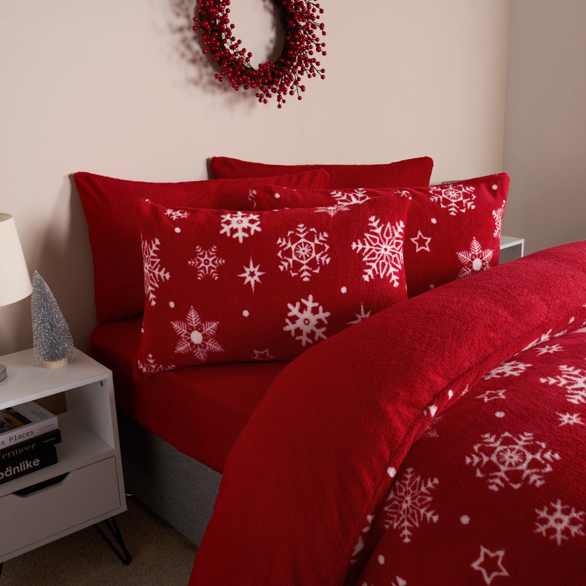The Snowflake Teddy Duvet Set is a luxurious bedding ensemble that brings warmth and style to your bedroom. Made from soft, plush teddy fabric, it offers unmatched comfort during chilly nights. The set includes a duvet cover adorned with a charming snowflake pattern, creating a cozy winter ambiance. Available in various colors to suit your decor. Upgrade your sleep experience with this elegant and snug duvet set.