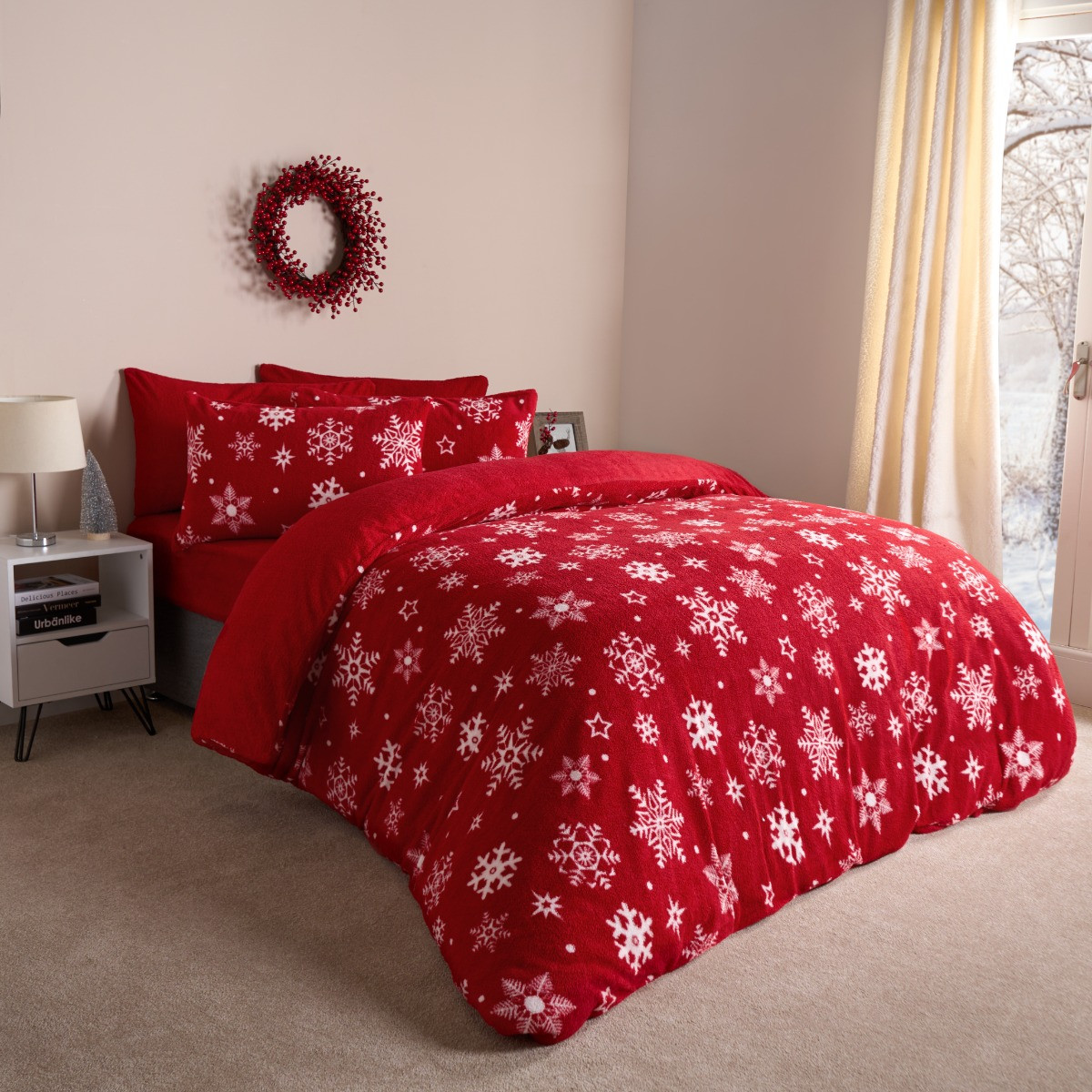 The Snowflake Teddy Duvet Set is a luxurious bedding ensemble that brings warmth and style to your bedroom. Made from soft, plush teddy fabric, it offers unmatched comfort during chilly nights. The set includes a duvet cover adorned with a charming snowflake pattern, creating a cozy winter ambiance. Available in various colors to suit your decor. Upgrade your sleep experience with this elegant and snug duvet set.