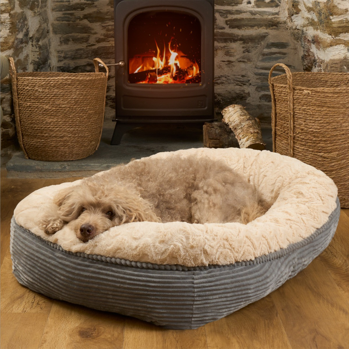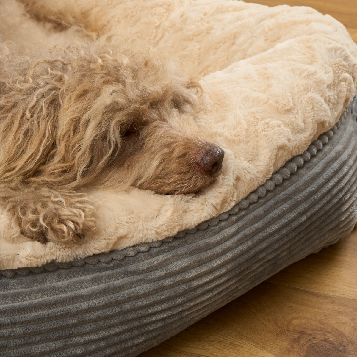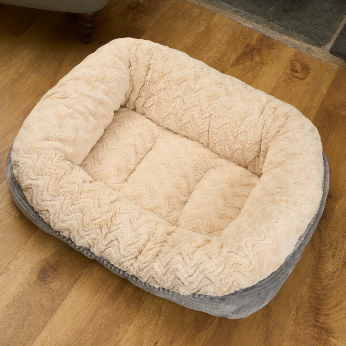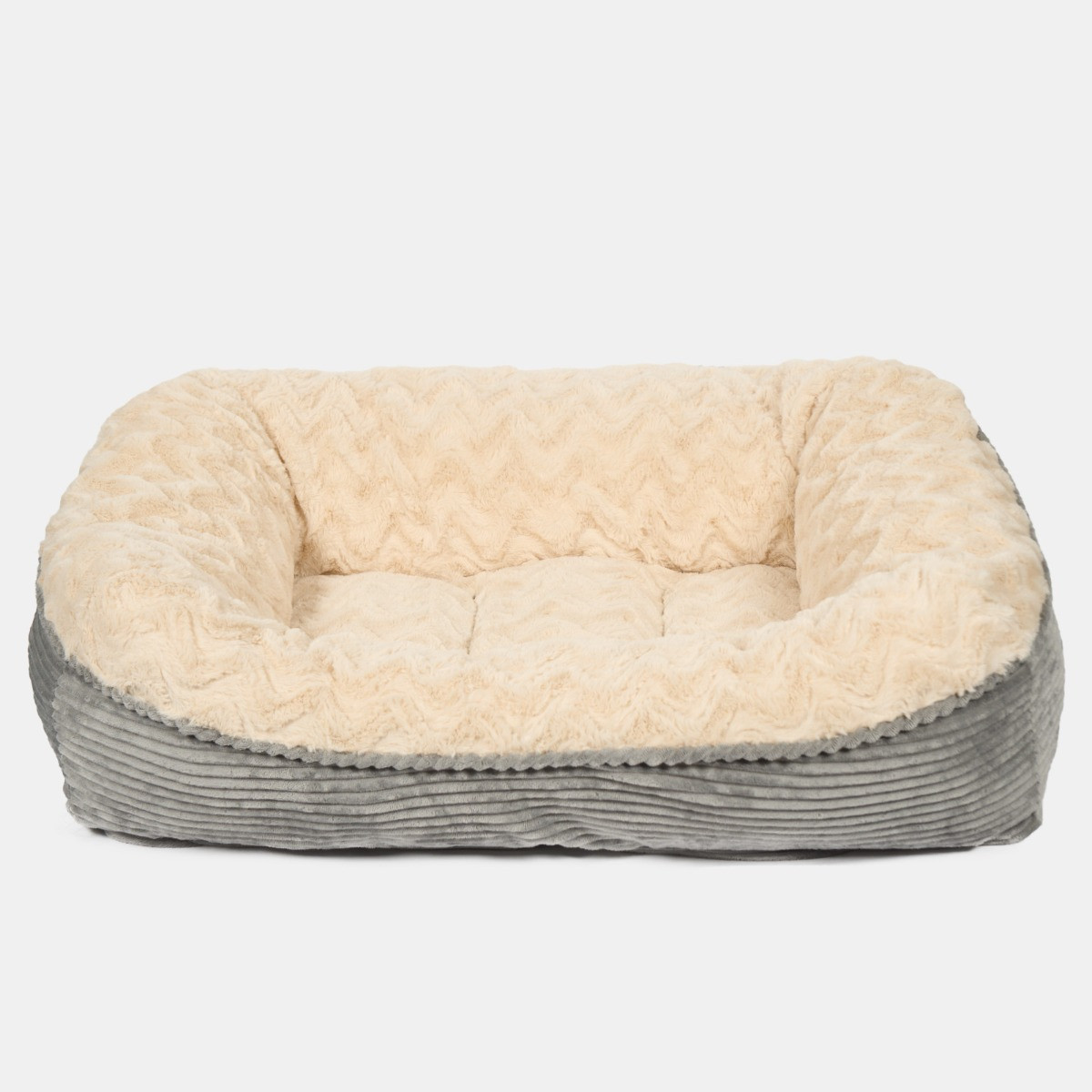 OHS Soft Faux Fur Ribbed Pet Bed, Cream/Grey - Extra Large