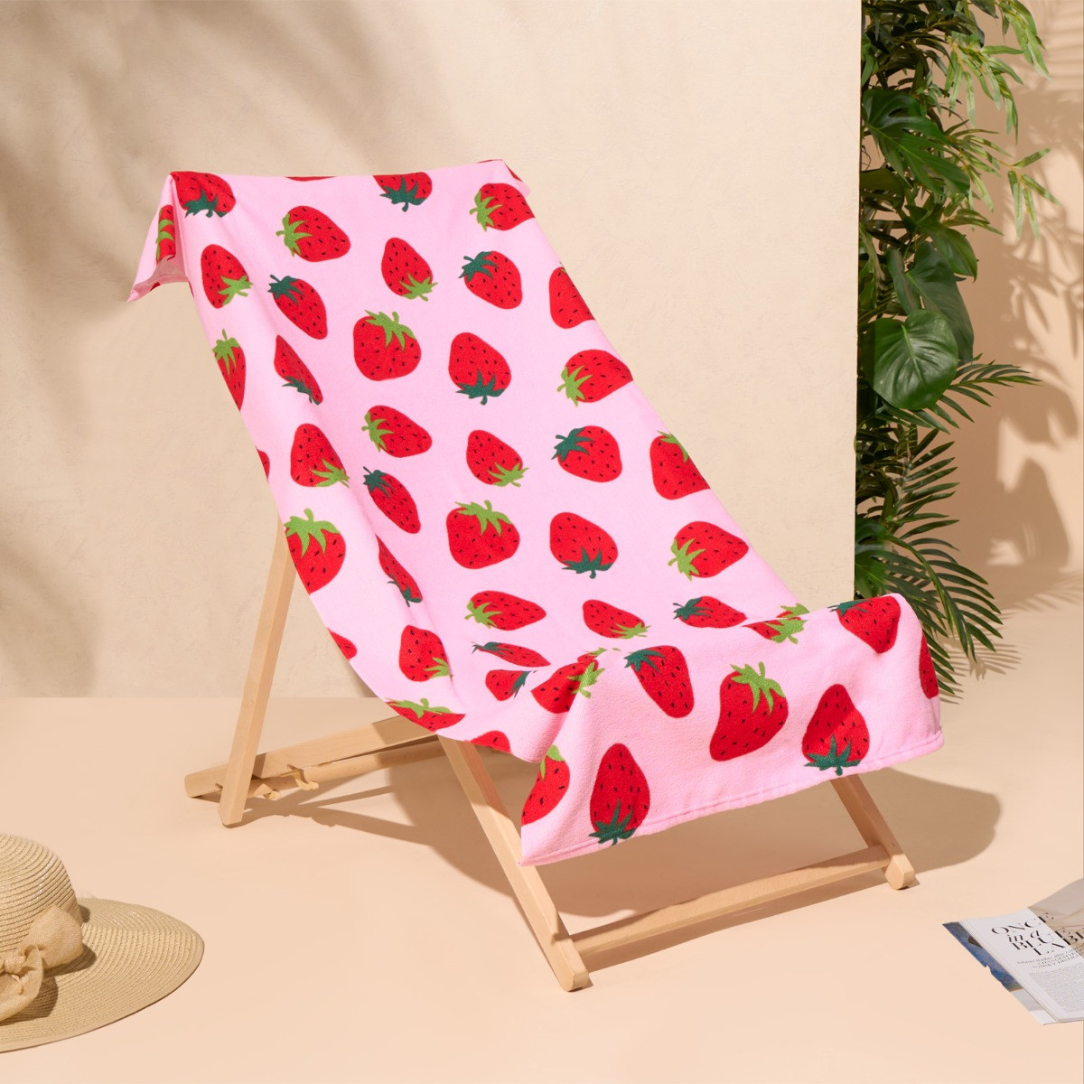 OHS Strawberry Print Beach Towel - Pink