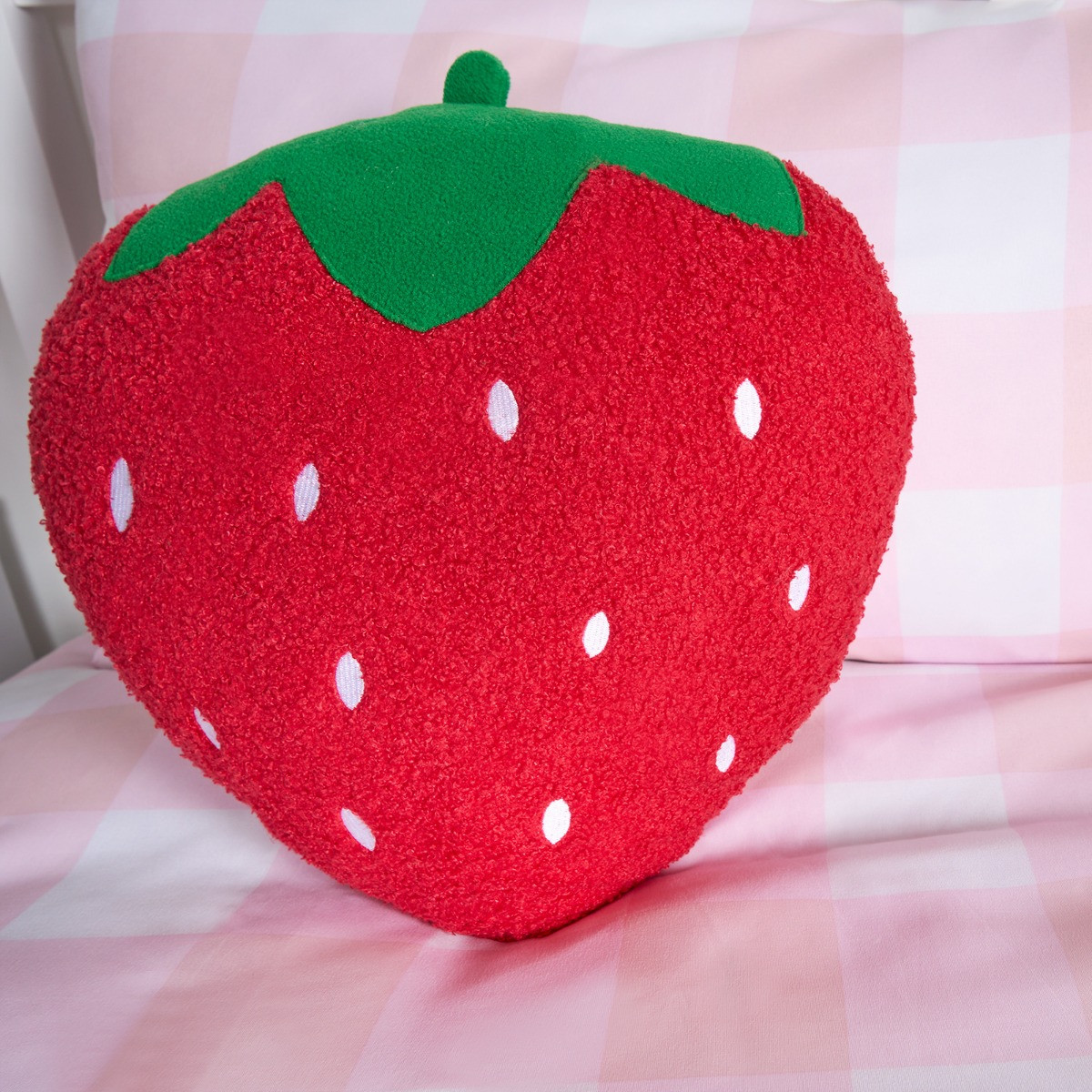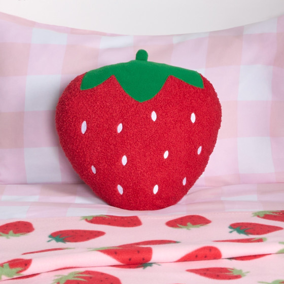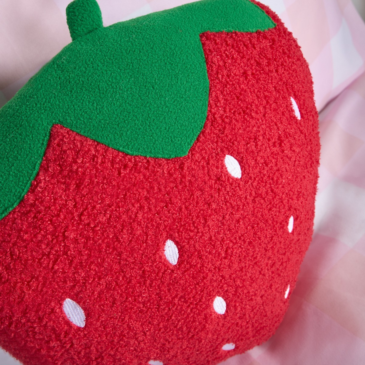 Introducing the OHS Strawberry Shaped Scatter Cushion, a cute and playful addition to any child's bed or room. Shaped like a vibrant red strawberry with a green top as the stem, this charming cushion adds a fun and whimsical touch to decor. Perfect for brightening up beds, play areas, or reading nooks, it combines delightful design with comfort, making it a delightful accent for kids’ spaces.