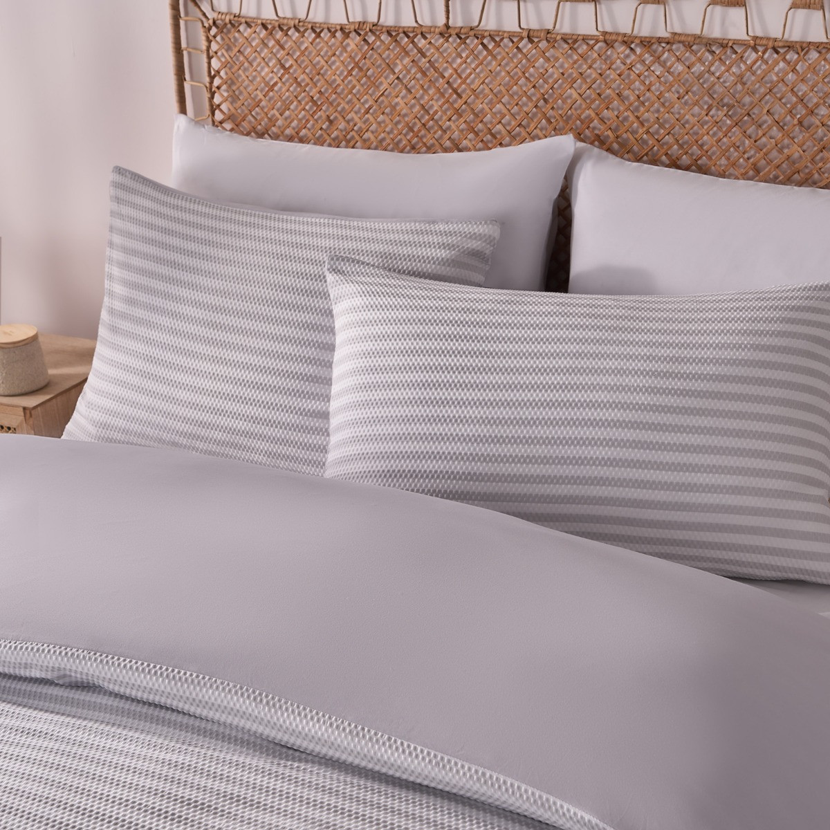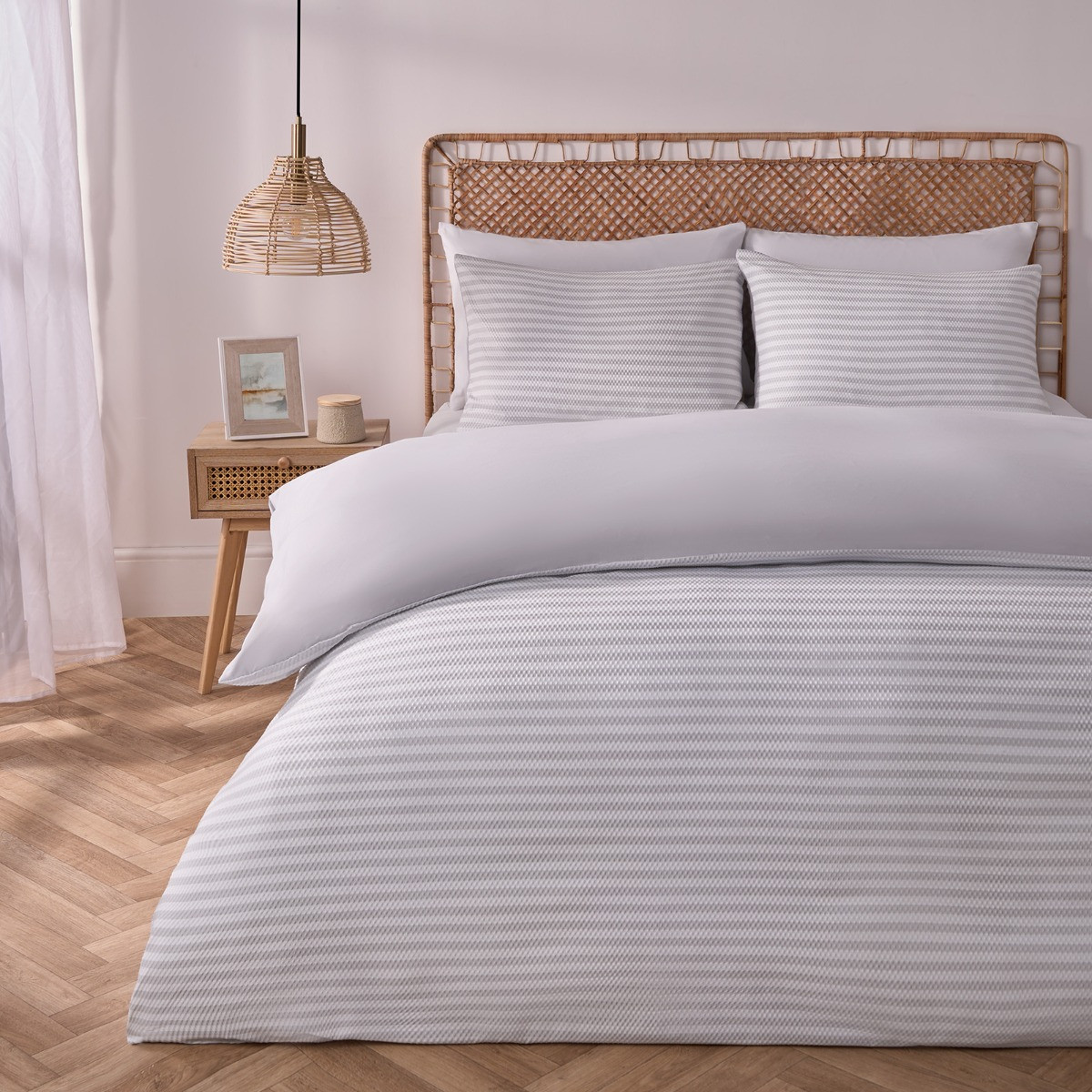 OHS Stripe Embossed Duvet Cover Set, Superking - Grey