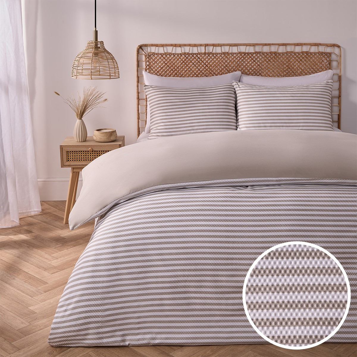 OHS Stripe Embossed Duvet Cover Set, Superking - Natural