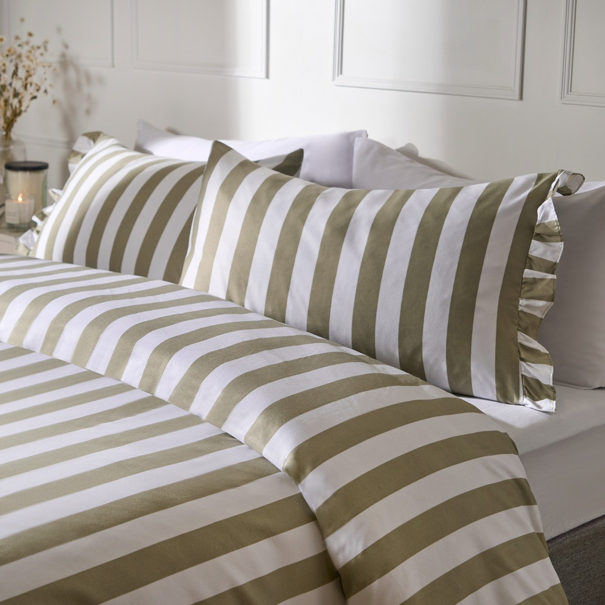 OHS Stripe Print Frill Edge Duvet Cover Set - Sage