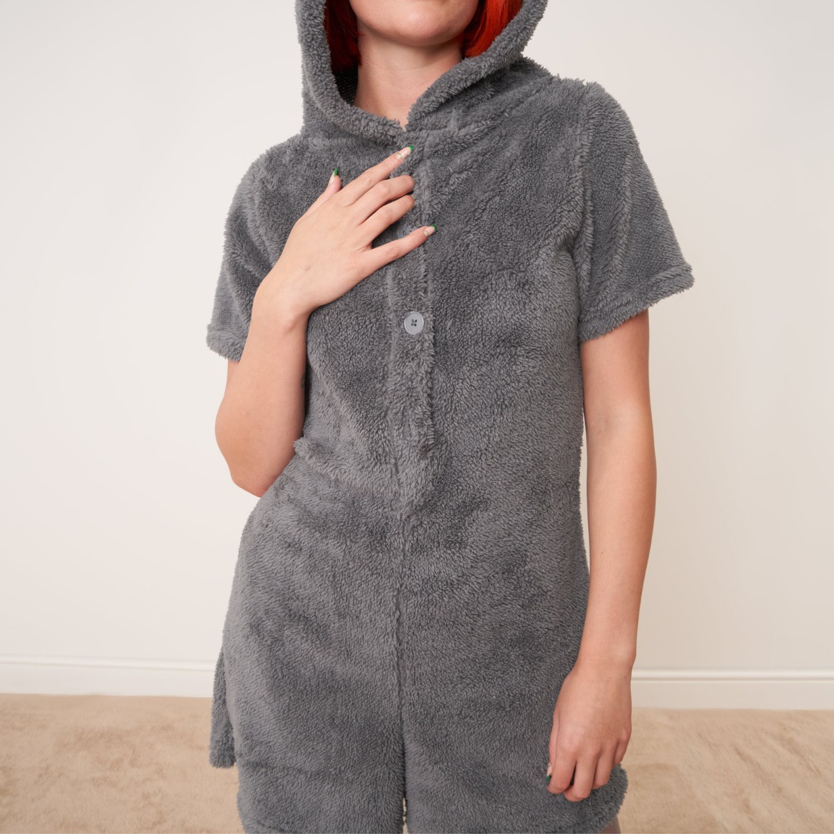 Our brand new playsuit is a soft touch teddy fleece fabric, featuring a plush hood. This playsuit will be your new favourite addition to your growing loungewear collection. Simply style with your favourite pair of slippers and you’re ready for the perfect night in.