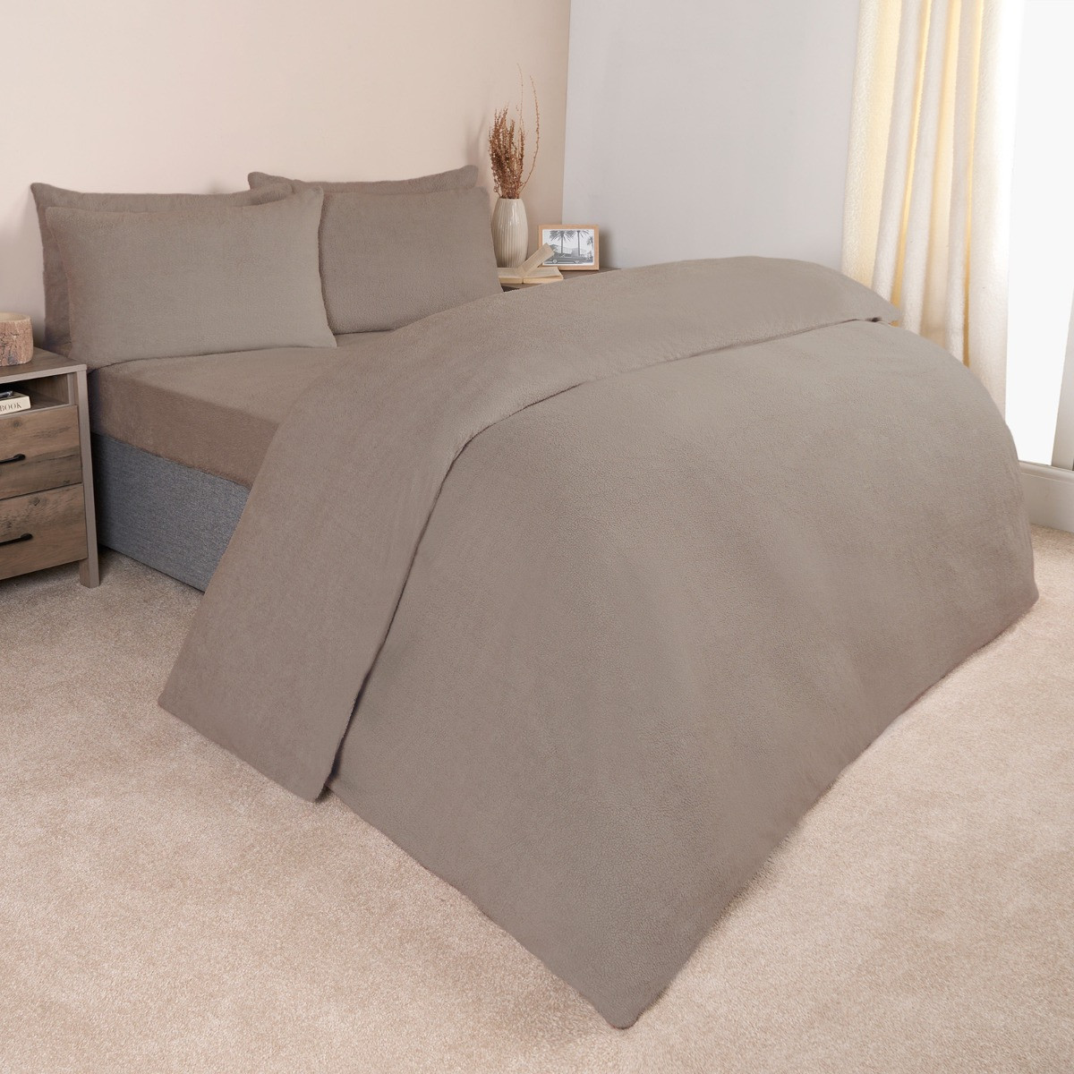 Enjoy plush comfort with the encompassing Teddy Fleece Duvet Set from our Brentfords range. Crafted from supersoft teddy polyester, this bedding set is a fantastic choice for those who crave that bit of extra warmth on those chillier nights. This easy-care bed linen will give your bedroom a modern, fresh feel and once washed it has great resistance to wrinkles, fading and shrinkage. Complete with matching pillowcase(s), the Brentfords Teddy Fleece Duvet Set offers added warmth and a cosy look.