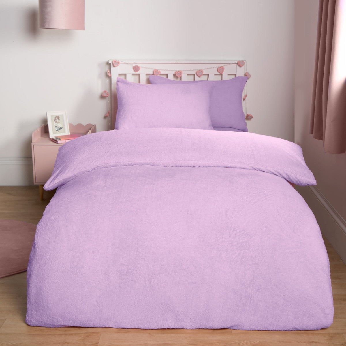 OHS Teddy Fleece Duvet Cover Set - Lilac