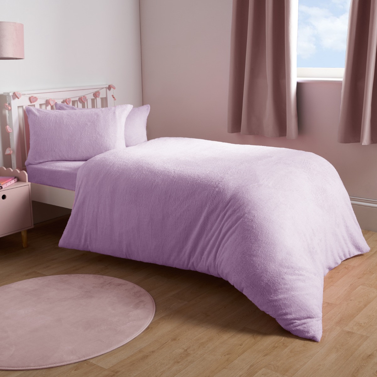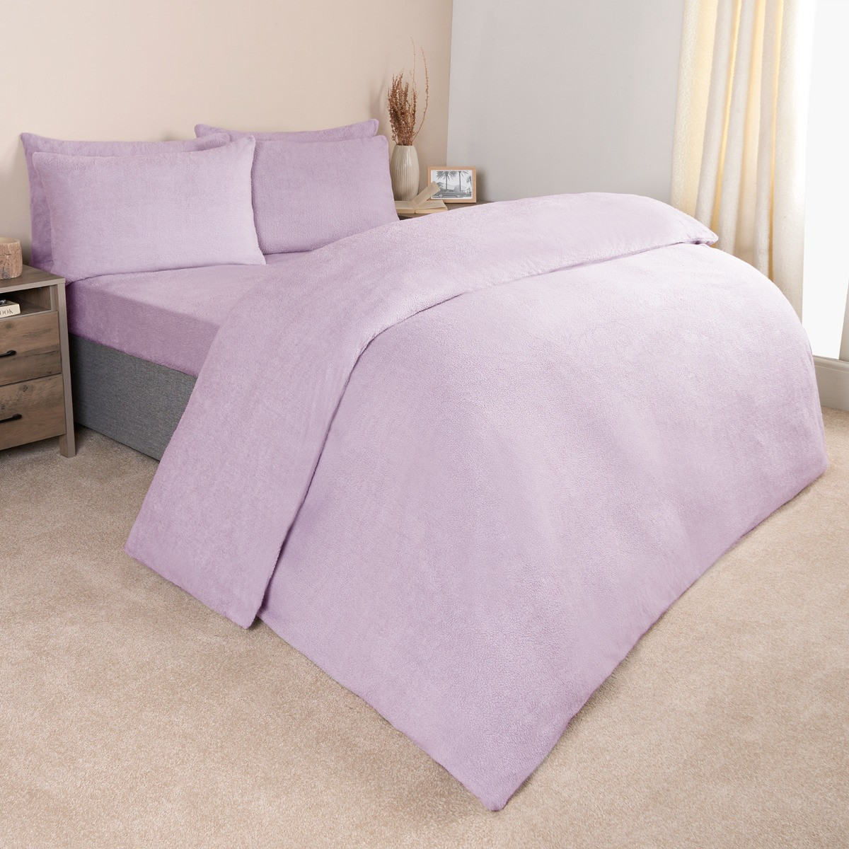 OHS Teddy Fleece Duvet Cover Set, Lilac - King