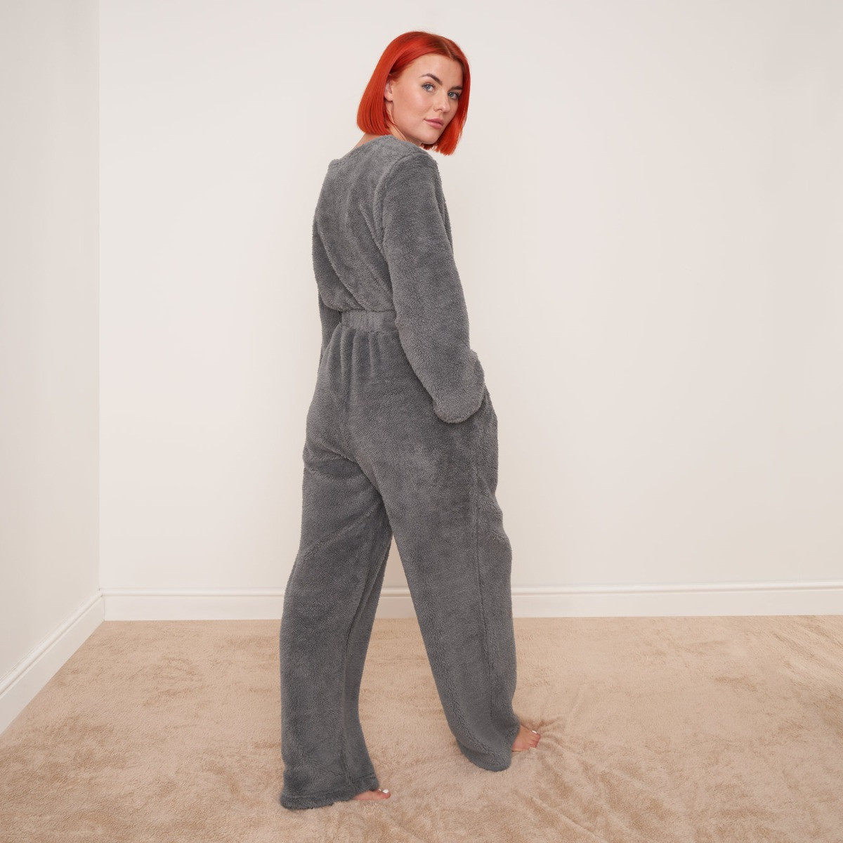 OHS Teddy Fleece Round Neck Jumpsuit, Grey - UK 14-16